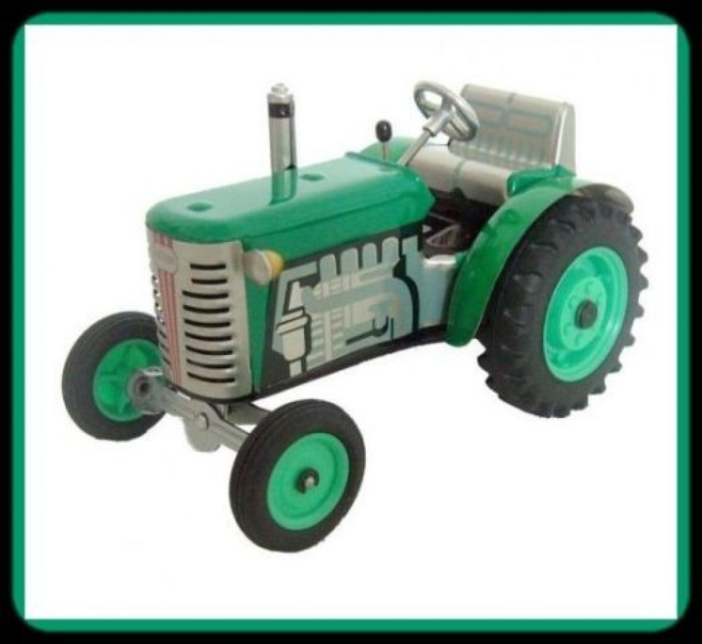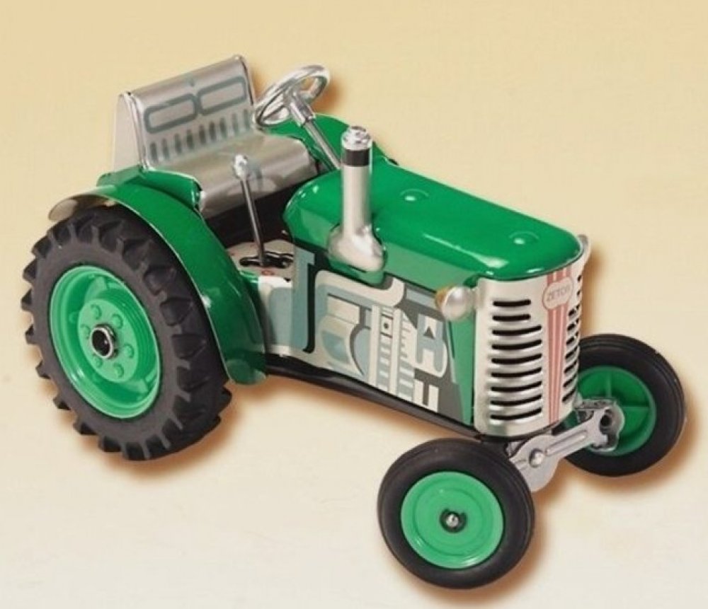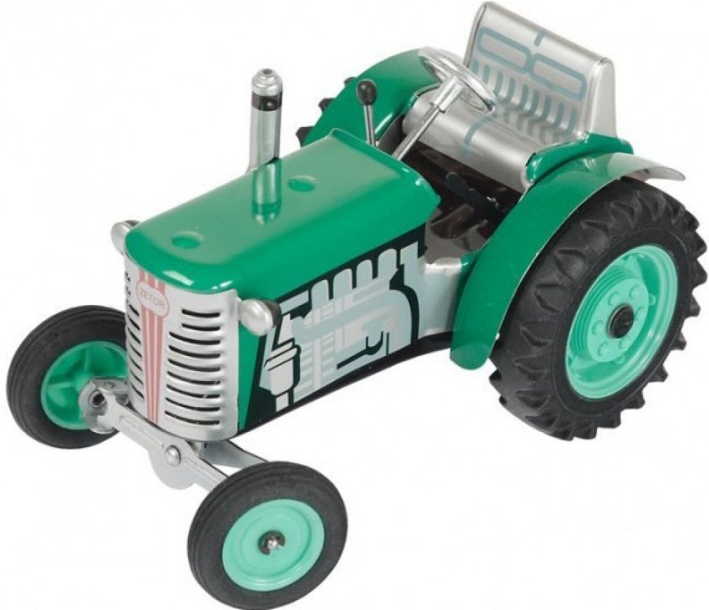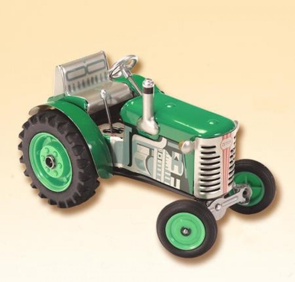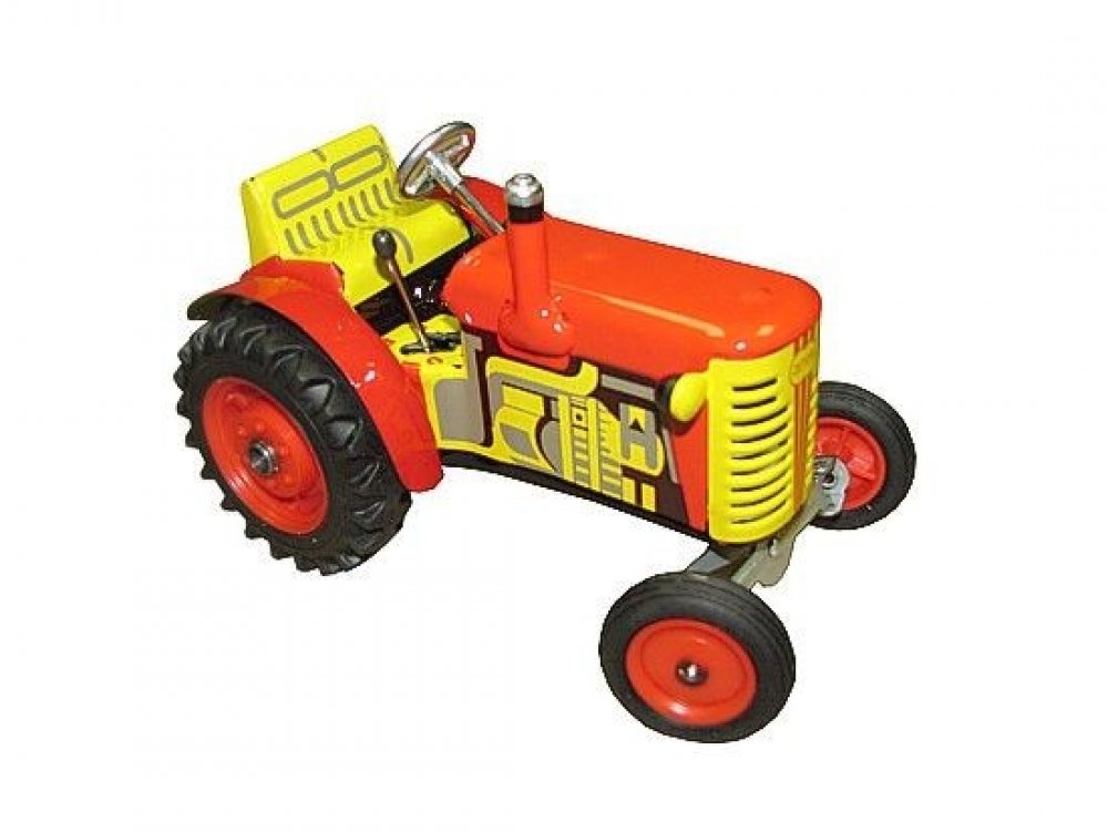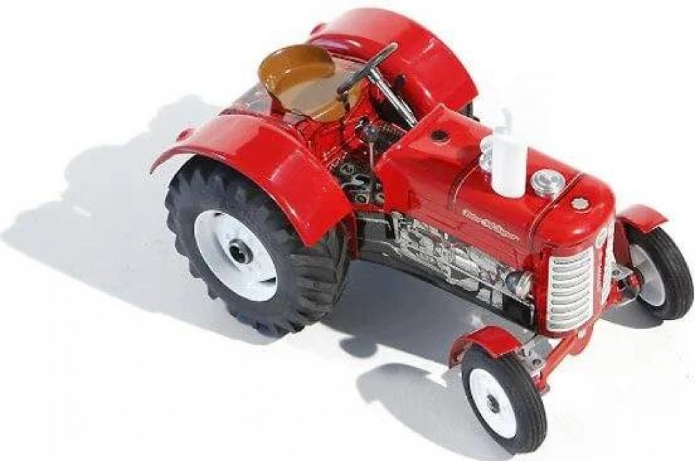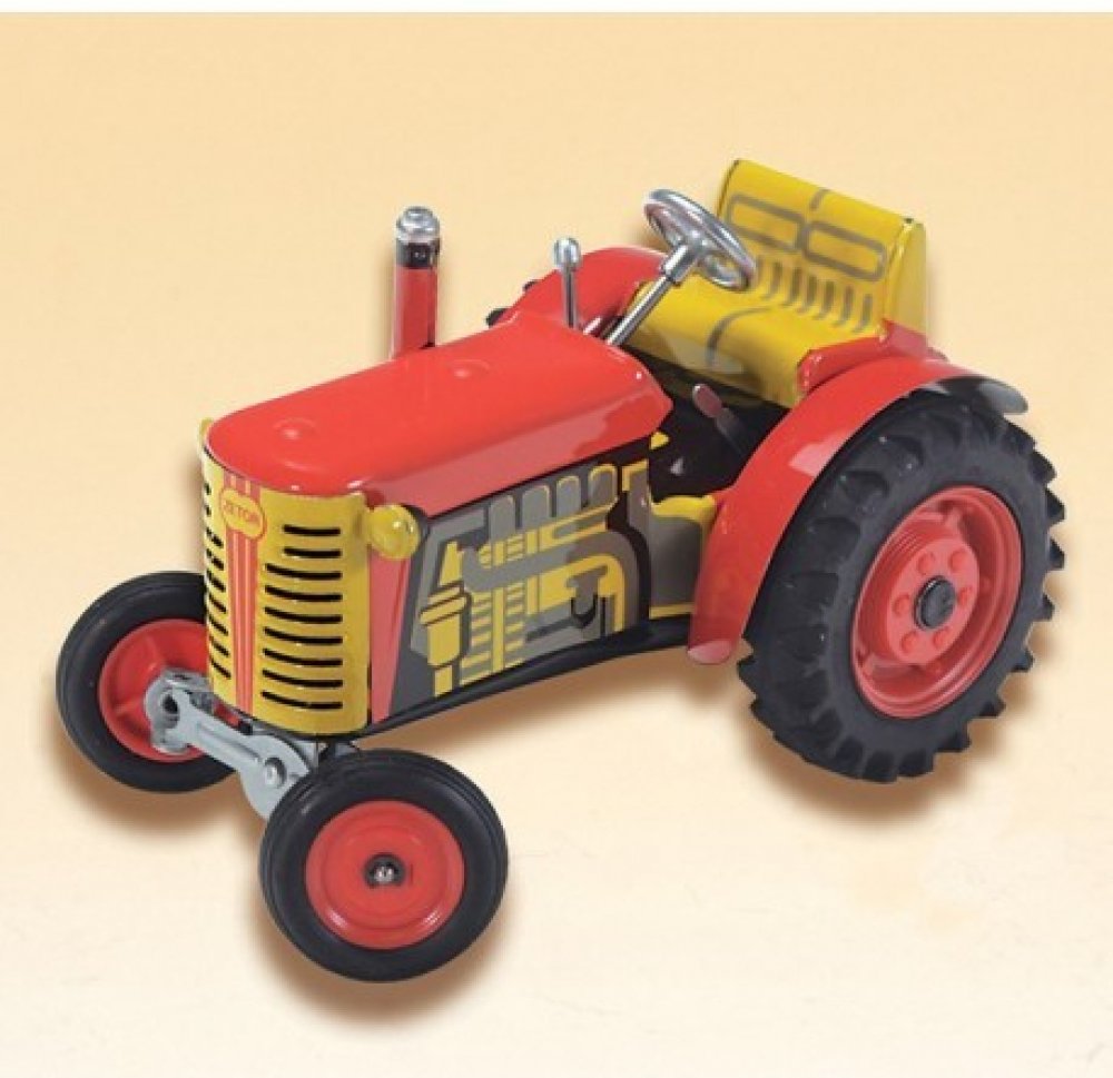Pohyb traktůrku zajišťuje unikátní pérový strojek natahovaný klíčkem. Převodovka má 3 rychlosti dopředu, neutrál a zpátečku. Traktor lze volantem skutečně řídit a navíc ho i zabrzdit ruční brzdou.