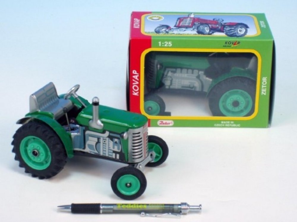 Kovap Traktor Zetor zelený na klíček kov 14cm 1:25