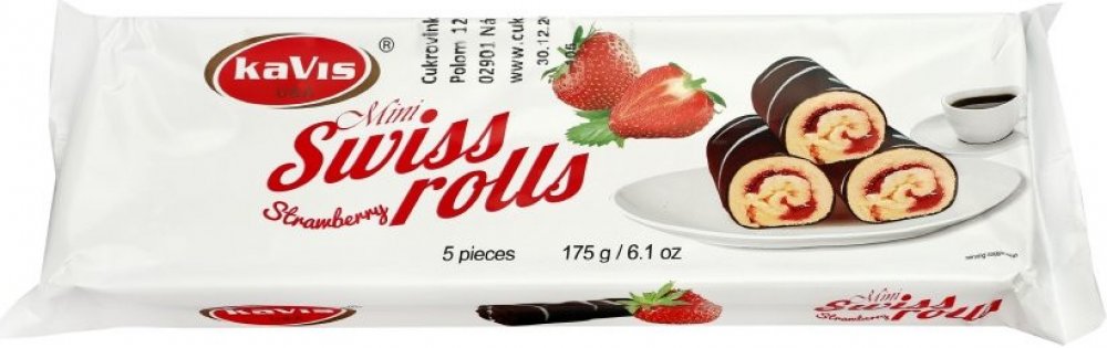 Složení: Těsto (43%): pšeničná mouka, cukr, vaječná směs, voda, punč [glukózovo-fruktózový sirup, sorbitolový sirup, spiritus, konzervační látka E202), zvlhčovadlo (E422, sorbitolový sirup), aroma, kypřicí látky (E-450i, E-500ii, kukuřičný škrob), emulgátory (E-471, E-1520, E-477, E-570), konzervační látka E202, sůl, regulátor kyselosti: E330, kakaová poleva 24%: cukr, rostlinné tuky: (řepkový, palmový), syrovátka v prášku, kakao se sníženým obsahem tuku, emulgátor: sójový lecitin, konzervační látka: E200, aroma, krém 23%: glukózovo-fruktózový sirup, rostlinné tuky: palmový olej, odstředěné mléko v prášku, syrovátka v prášku, emulgátor E471, aroma: plnění jahoda 10%: jablečný přetlak, cukr, jahodový přetlak (5%), glukózovo-fruktózový sirup, regulátor kyselosti (kyselina citrónová), bambusová vláknina, přírodní barvivo (košenila), aroma, zahušťovadlo (pektin, sodná sůl), konzervační látka (sorban draselný), rostlinný olej řepkový.