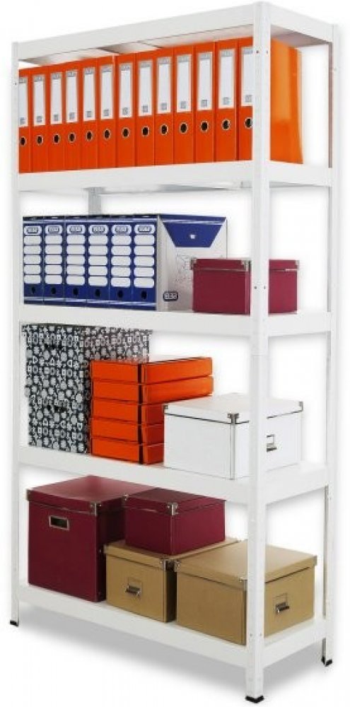 Profil nohy: L - 30 mm x 30 mmVzdálenost mezi policemi: libovolná Materiál: lakovaný bílý falcovaný plechPočet polic: 5Nosnost police: 130 kgNosnost regálu: 650 kgMontáž: zaskakovací police