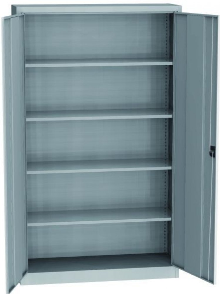 Univerzální kovová skříň 1950x1200x400 mm, vhodná pro provoz i kancelář dvoubodové uzamykání dveří, dole a nahořeocelové dveřeGSB zámek, dva klíče, 2000 kombinacívnitřní čepy umožňují otevření dveří o 110°nosnost korpusu 300 kgnosnost police 60 kg4 police, výškově přestavitelné po 25 mmbarva korpusu vždy světle šedá RAL 7035barva dveří dle výběru: světle šedá RAL 7035, modrá RAL 5012, žlutá RAL 10...