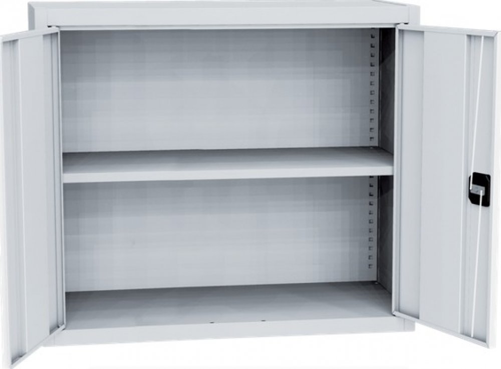 rozměr 800 x 950 x 400 mm, uzamykatelná skříň vybavená jednou policí Univerzální skříň do dílny s křídlovými ocelovými dveřmi. Rozměr: v x š x h: 800 x 950 x 400 mm dvoudveřová skříň - nástavec cylindrický rozvorový zámek jedna stavitelné police nosnost police 60 kg nosnost korpusu 300 kg Standardní barevné kombinace korpus RAL 7035 šedá dveře RAL 7035 šedá Jiné barevné odstíny dle RAL po dohodě T...