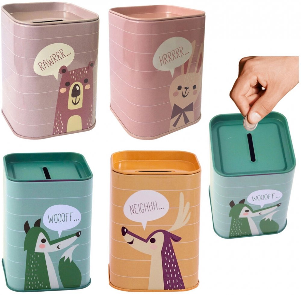 Roztomilá kovová pokladnička se zvířecím motivem je skvělý způsob, jak děti vést k šetření. Má kompaktní rozměry 11 × 8 × 8 cm, odolné kovové provedení a praktický otvor na mince. Díky hravému designu se stane i ozdobou dětského pokoje a motivuje k pravidelnému ukládání peněz. Dostupná ve více barevných variantách. Odolný kov, kompaktní velikost, zábavný motiv zvířátek, snadné vkládání mincí.Odolná kovová konstrukceTělo z pevného kovu chrání úspory a zajišťuje dlouhou životnost i při každodenním používání.Snadné vkládání mincíPraktický otvor na víku umožňuje dětem pohodlně vhazovat mince a motivuje k pravidelnému šetření.Rozkošné motivy zvířátekNa výběr jsou veselé varianty se psem, medvídkem, králíčkem či koníkem – perfektní doplněk dětského pokoje.Podpořte finanční návyky dětí stylově. Kovová pokladnička se zvířátky nabízí bezpečné uložení drobných, je lehká, praktická a díky hladkému povrchu se snadno udržuje. Ozdobné proužky a bubliny se zvoláním (např. „RAWRRR…“, „WOOOFF…“) dodávají hravý vzhled, který děti baví.Pokladnička má na víku široký otvor pro mince, takže vkládání je snadné i pro malé ruce. Kompaktní rozměry umožní umístit ji na psací stůl, poličku nebo noční stolek. Je to ideální dárek pro první kapesné a každodenní učení trpělivosti a systematičnosti.Varianty motivů: růžová s králíčkem, růžová/fialová s medvídkem, žlutá s koníkem, zelená se psem.Hravý design – roztomilá zvířátka a barevné proužky rozjasní dětský pokoj.Trvanlivý materiál – kovové tělo odolá každodennímu používání.Kompaktní rozměr – 11 × 8 × 8 cm pro snadné přenášení a umístění.SpecifikaceMateriálkovRozměry11 × 8 × 8 cmMotivzvířátka (pes, medvídek, králíček, koník)Otvor na minceano, ve víkuBarvamix variant (výběr před nákupem, jinak náhodně)Obsah balení1× kovová pokladnička