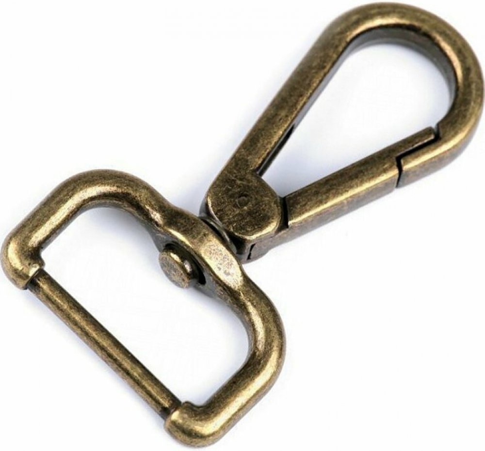 Kovová karabina otočná, průvlek 25 mm - staromosaz (10 ks)