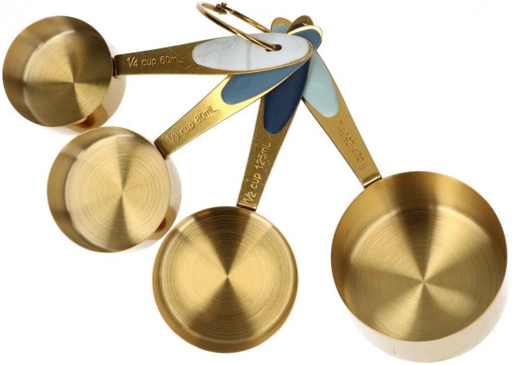 Obsahuje 1 šálek, 1/2 šálku, 1/4 šálku a 1/3 šálku.