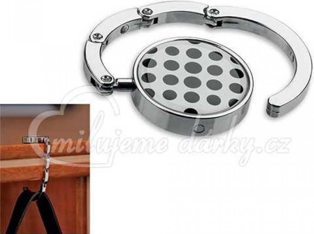 Kovový držák háček na tašku či kabelku s magnetem motiv puntík