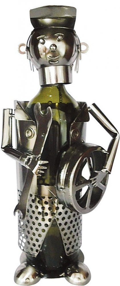 *kovový stojan na jednu láhev vína o objemu 0,7 l*motiv automechanik*originální tematický dárek pro každou příležitost Popis produktu