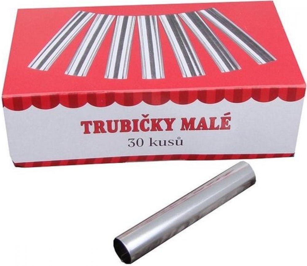 Menší trubičky mají délku 7,5 cm a jsou vyrobené z pocínovaného plechu. Před namotáním těsta trubičky pomažte trochou tuku či oleje. Omotané trubičky rozložte na plech s pečícím papírem. Balení obsahuje 30 kusů trubiček.