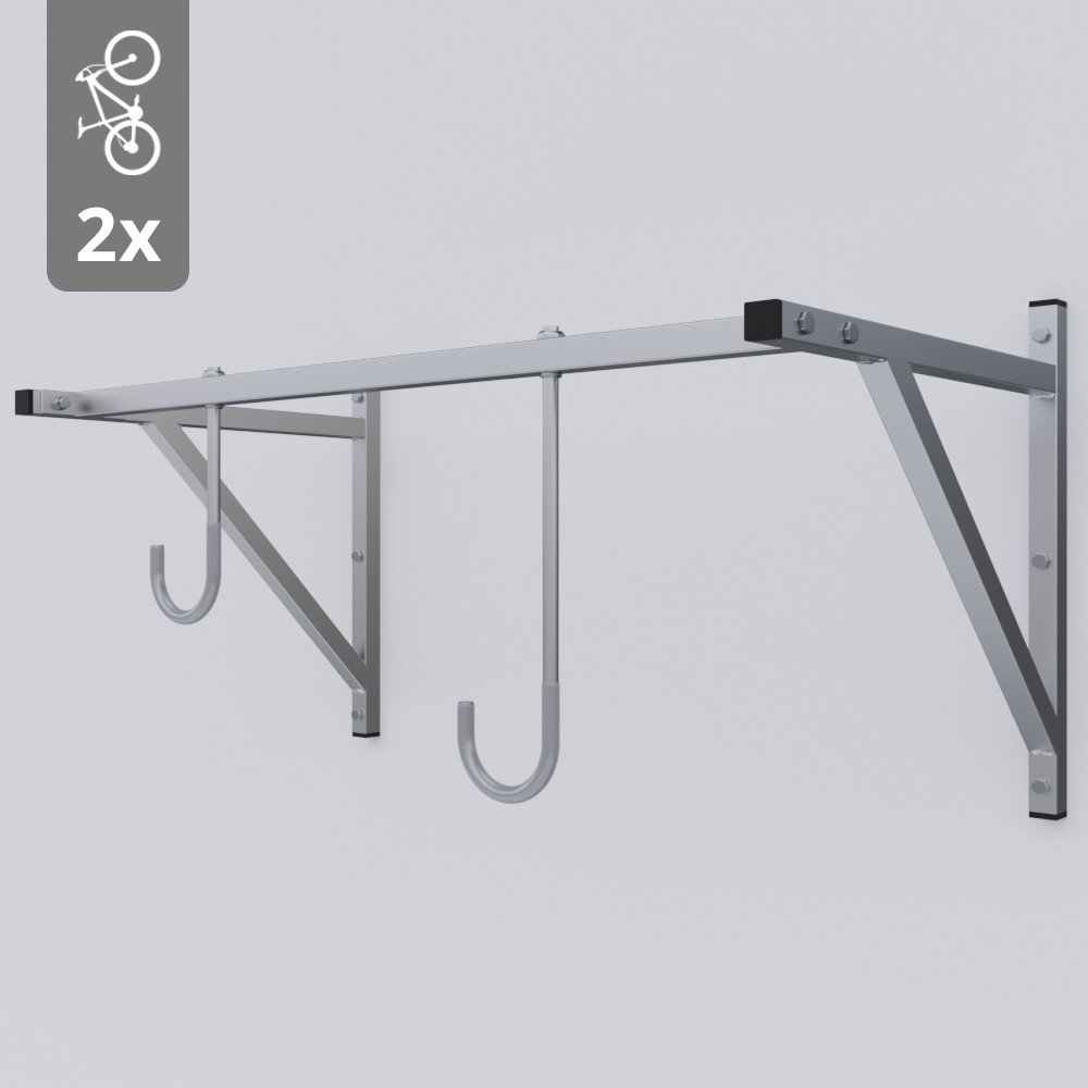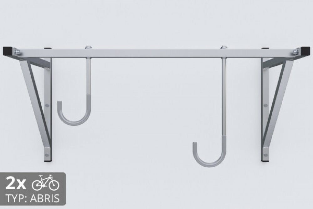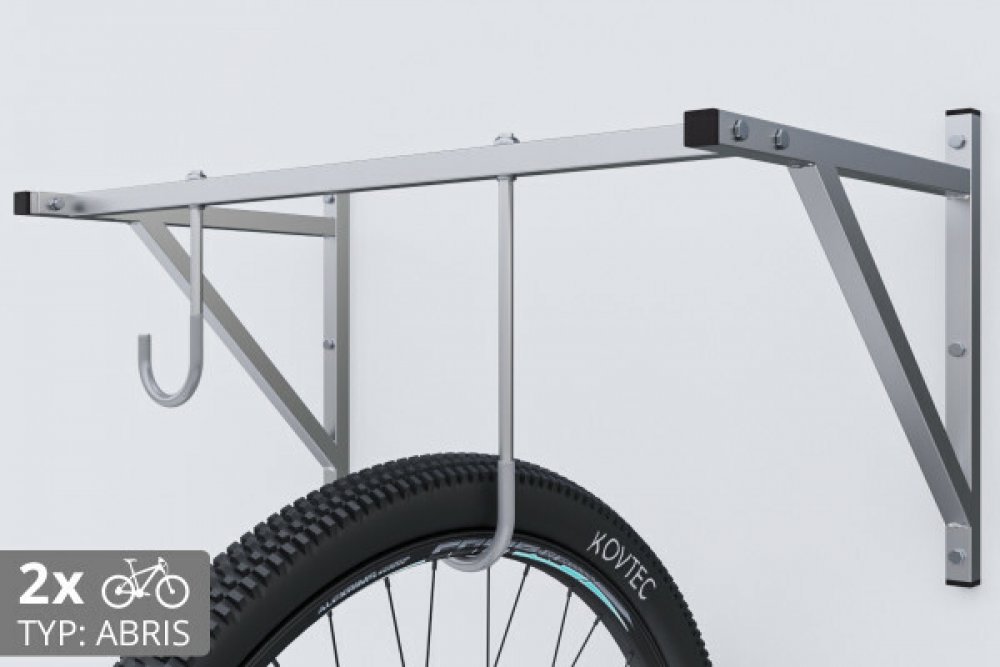 Elegantní držák na kolo ABRIS pro uskladnění dvou kol na zeď, šetří prostor a chrání ráfky.