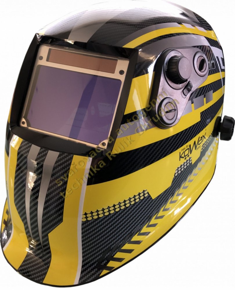 Plynule proměnná clona při zatmaveném filtru (při svařování) 5-8, 8-13 dle DIN ovládaná externě potenciometrem.