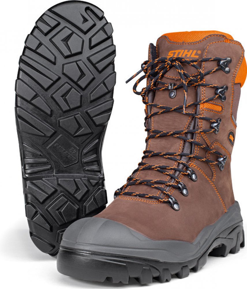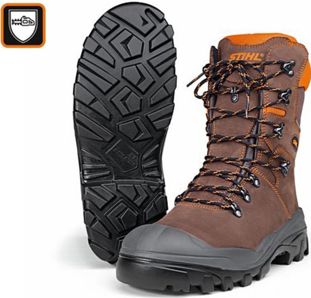Kožené boty STIHL FUNCTION pro práci s motorovou pilou s ochranou proti proříznutí jsou ideálním základním modelem pro profesionály i soukromé uživatele. Díky protiskluzové podrážce s hlubokým vzorkem a ochraně proti vyvrtnutí kotníku poskytují bezpečnou oporu i na nezpevněném terénu. Boty jsou vodoodpudivé, prodyšné a mají polstrovaný okraj kotníkové části pro maximální komfort. Robustní šněrovací prvky zajišťují pevné a snadné zavázání pomocí háčků. Ocelová špička chrání před padajícími předměty, zatímco ochrana špičky je odolná proti opotřebení a oděru. Ochrana proti proříznutí pokrývá celou přední část bot, včetně jazyka, čímž zajišťuje bezpečnost při práci s přístroji STIHL.