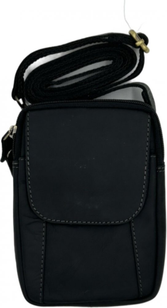 Kožená pánská taška na mobil přes rameno s kapsou černá 832-2