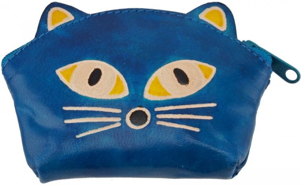 Malá dámská peněženka nejen na drobné. Modrá, ručně malovaná pravá kůže pro milovnice koček.