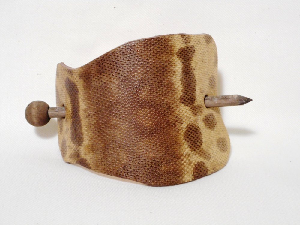 Velmi elegantní kožená spona do vlasů, na kterou byla použita pravá kůže z hada. Spona je vhodná pro středně husté vlasy dlouhé po lopatky nebo velmi husté vlasy dlouhé na ramena.