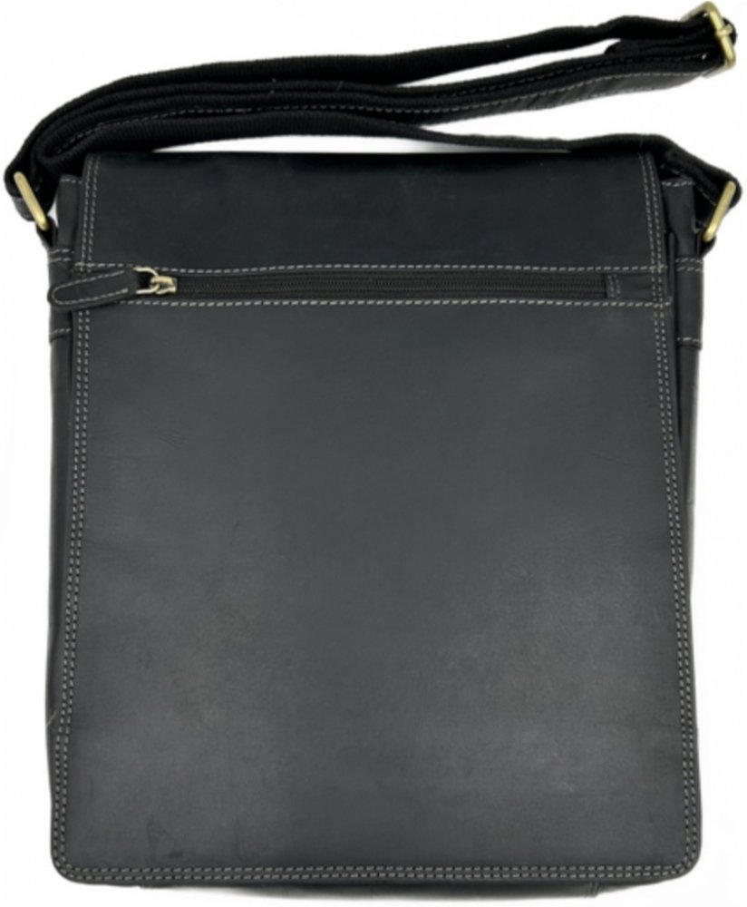 Kožená taška přes rameno velká A4 s klopnou černá 803-2