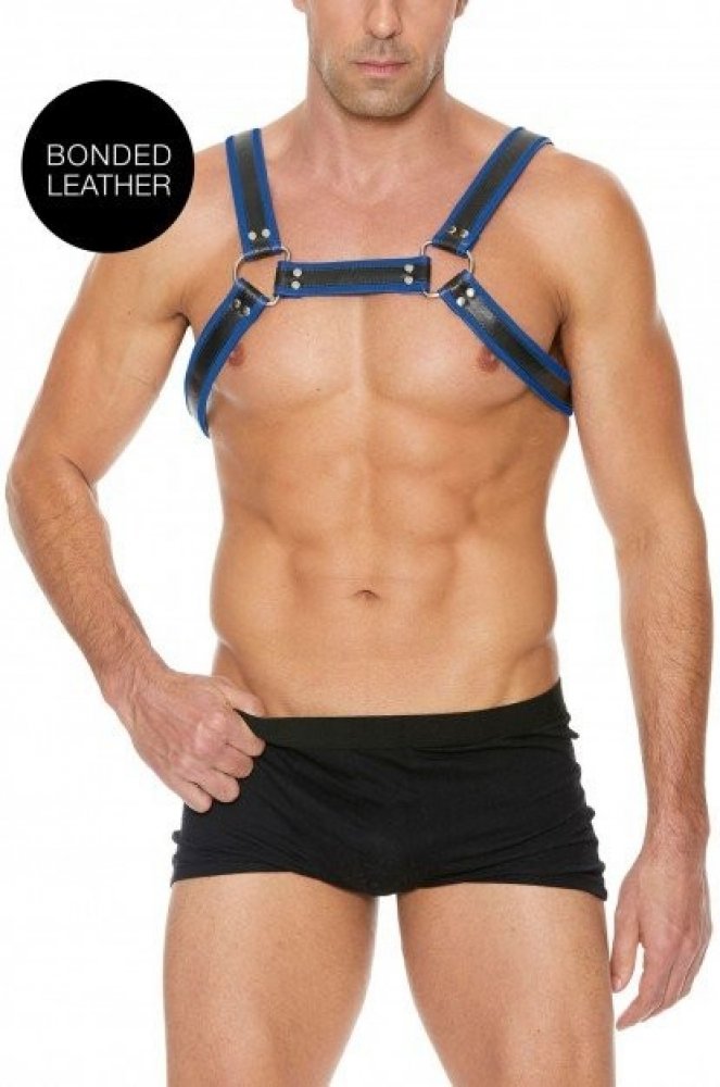 Kožený harness Ouch! Buckle Bulldog modrý S/M pánský kožený postroj