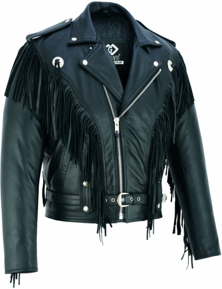 Kožený křivák s třásněmi. Vyrobeno ze 100% hovězí kůže, střapce s třásněmi podél rukávů, vzadu a vpředu dávají této bundě klasický motorkářský a kovbojský vzhled. Se dvěma otevřenými vnějšími kapsami a skrytými kapsami uvnitř pro cenné předměty. Tato bunda má dvojitou podšívku, kterou lze vyjmout, a kapsy pro chrániče v zádech, ramenou a loktech. Celobederní pás Dvojitá podšívka (jedna odnímatelná) Vnitřní a vnější kapsy YKK zipy Chrániče možno dokoupit za 490,-/set. Velikosti S-5XL