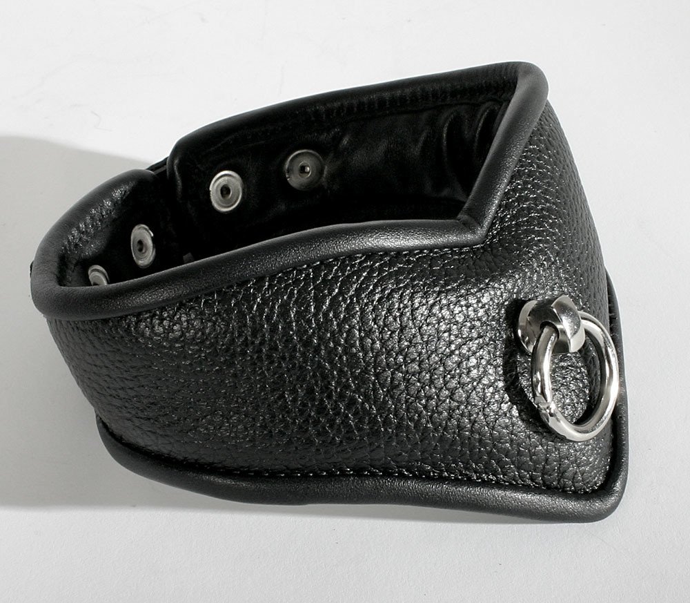 Kožený polstrovaný obojek s malým kovovým kroužkem