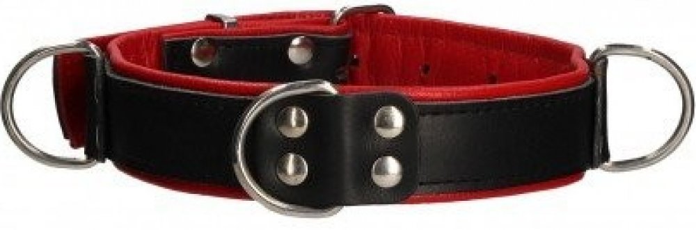 Kožený obojek vybavený třemi D-kroužky pro bondage. Celková délka 55 cm, šířka 3 cm. Vyrobený z kvalitní lepené kůže a kovu. Dostupný ve více barvách.