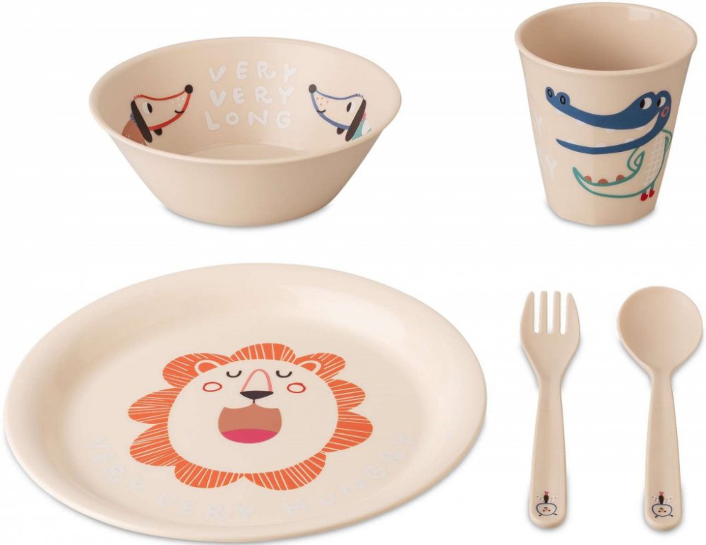 Ergonomický design: Sada obsahuje malý talíř, misku a hrnek, které jsou ideálně přizpůsobeny malým ručičkám dětí. Navíc, příbory mají zaoblené hrany, což usnadňuje učení jídla.
