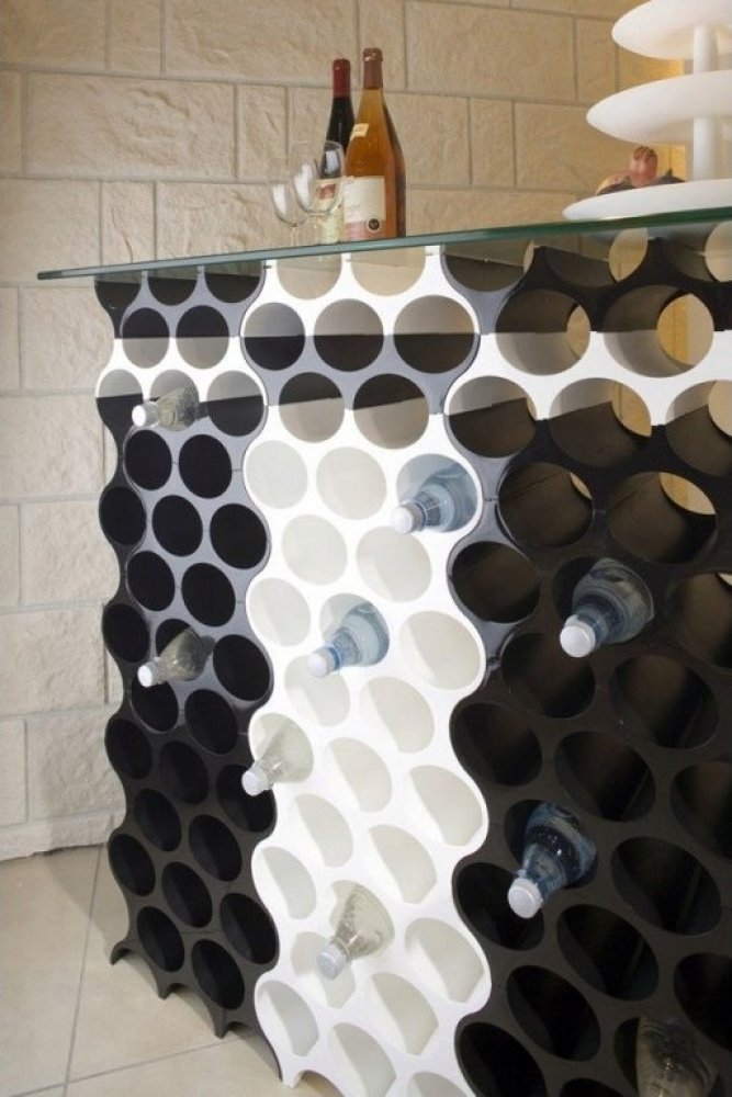 S modulem SET-UP jsou stěny vybaveny moderní plástovou strukturou. Modulární systém nabízí nesčetné možnosti: lze postavit stěny s polovinou stěnou nebo stěny až ke stropu. Regály můžete naplnit láhvemi s vínem, minerálkami nebo je možné je použít například na noviny. Lze kombinovat různé barvy. Do jednoho stojanu se dá uskladnit až 8 lahví.