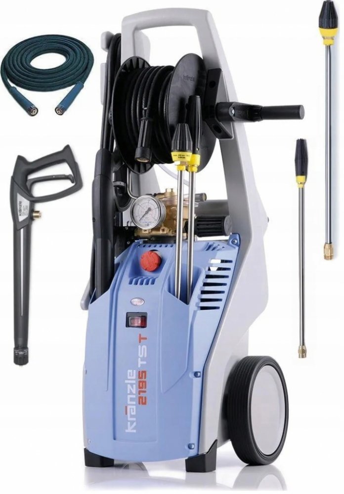 Výkonný a robustní profesionální vysokotlaký studenovodní čistič Kränzle K 2195 TST (D12) s integrovaným hadicovým bubnem na robustním podvozku a s velkými celopryžovými koly je kombinací velkého množství technických inovací, které poskytují ten nejvyšší výkon, spolehlivost, bezpečnost a provozní pohodlí při každodenním používání. Technologie Kränzle Vám pomůže šetřit čas, vodu a energii - při maximální účinnosti čištění!