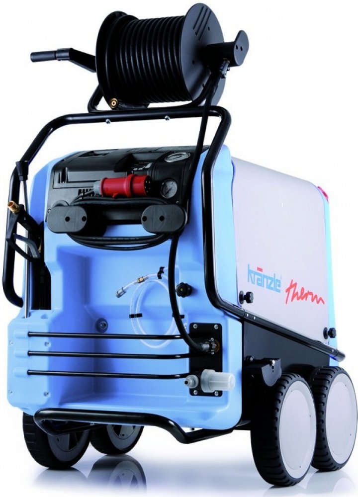 Horkovodní vysokotlaké čističe Kränzle therm vytvářejí pomocí naftového vytápěcího kotle a topné spirály teplotu vody až 89 °C. Snížením množství vody a pracovního tlaku lze čistit parou až do 155 °C (řada Kränzle therm-1). To nejen odstraňuje tvrdé nečistoty z povrchů, ale také účinně a efektivně bojuje proti virům a bakteriím a zcela je likviduje! Volitelně jsou k dispozici také jednotky s elektrickým průtokovým ohřívačem vody (řada Kränzle e-therm) vhodné pro použití v interiérech bez odvětrávání.