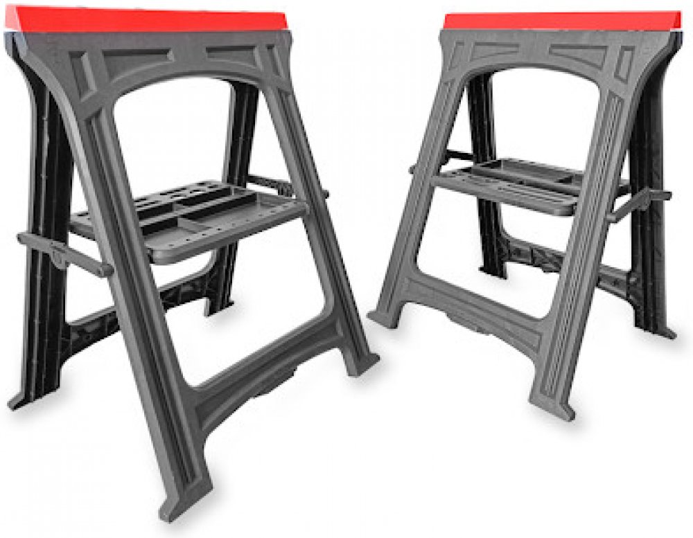 Stavební podstavec/koza s integrovanou poličkou na nářadí představuje inovativní a všestranný nástroj, který se dodává v sadě po dvou kusech a disponuje impozantní nosností až 170 kg. Na obou stranách horní výkyvné pracovní lišty je měřítko, na jedné straně v centimetrech a na druhé straně v palcích.