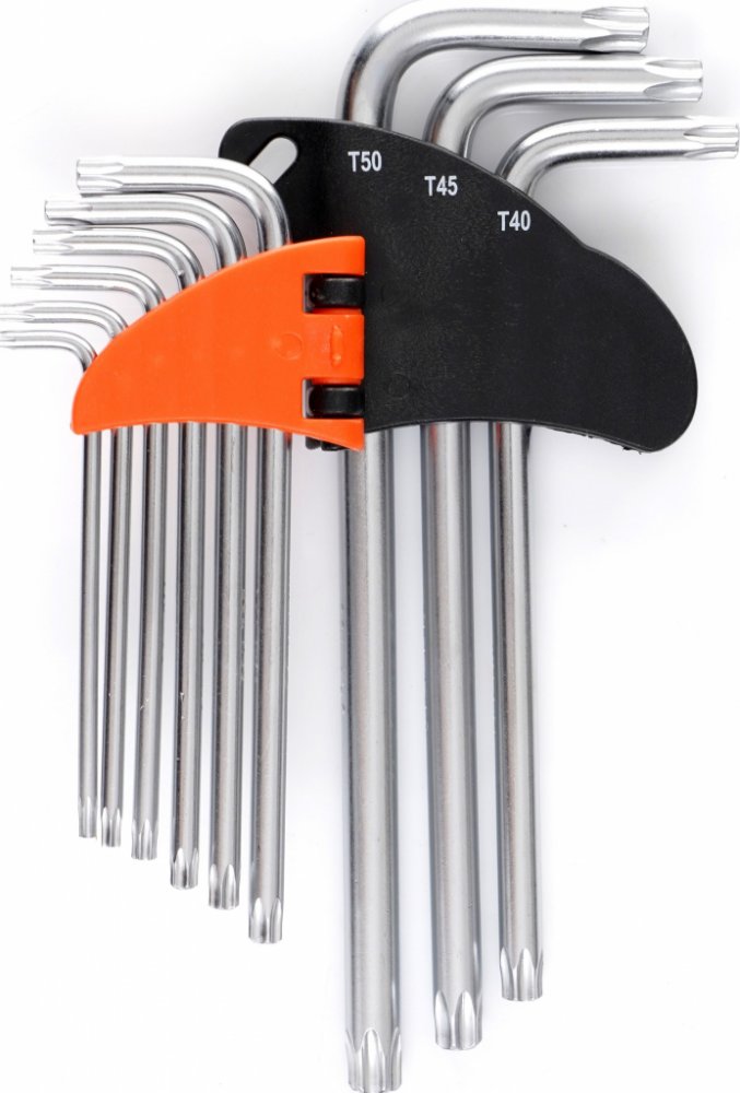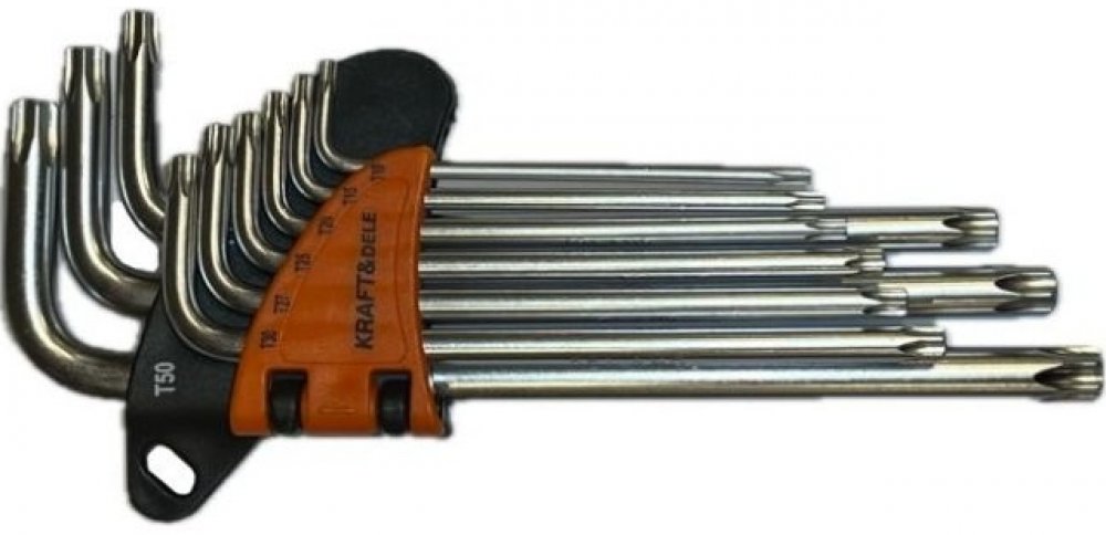 Sada barevných imbusových modelů Kraft & Dele KD11932 mají speciální hrot s otvorem uzpůsobený pro práci se šrouby TORX.