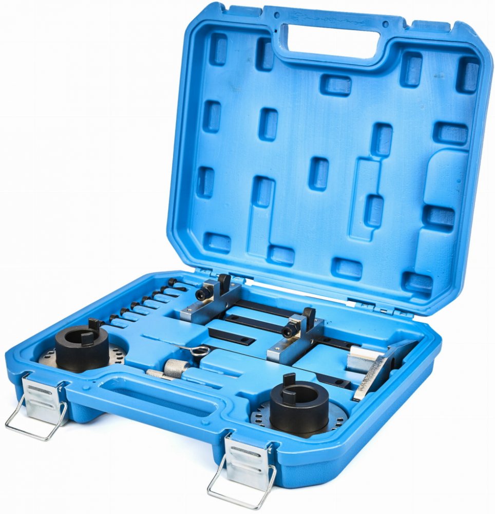Aretační sada přináší profesionální řešení pro veškeré práce spojené s výměnou rozvodového řemene. Poskytuje maximální přesnost a spolehlivost při blokaci rozvodových kol v servisní poloze. Díky speciálnímu tvaru zámků lze snadno dosáhnout přesného nastavení časování zapalování, což je klíčové pro optimální výkon motoru.