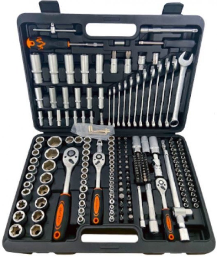 Celá sada se skládá z 219 různých prvků, které zajistí správný výběr nástroje pro vaše potřeby. Nástroje jsou vyrobeny z tvrzené chrom -vanadové oceli (CrV) určené pro dílenské nářadí. Chrom zaručuje oceli odolnost proti korozi, oxidaci, oděru a vysokou odolnost vůči vysokým teplotám. Přídavek vanadu inhibuje růst zrna během zpracování a současně zvyšuje tažnost kalených i temperovaných forem.