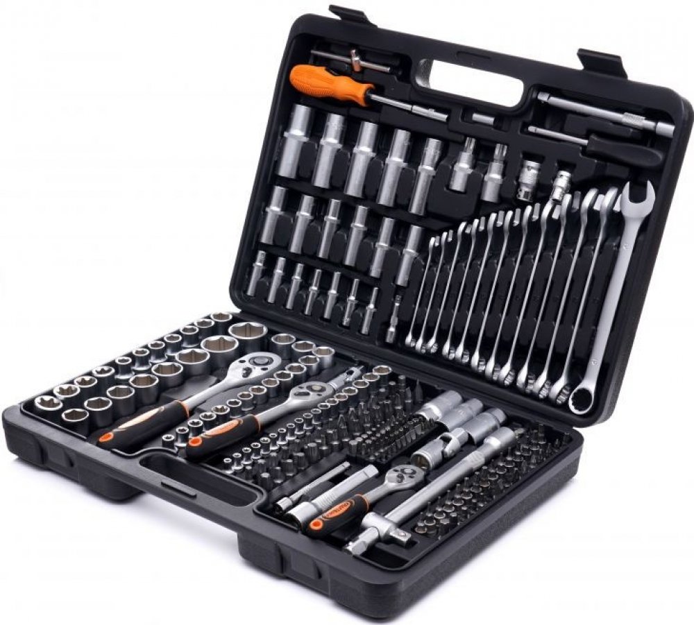 Celá sada se skládá z 219 různých prvků, které zajistí správný výběr nástroje pro vaše potřeby. Nástroje jsou vyrobeny z tvrzené chrom -vanadové oceli (CrV) určené pro dílenské nářadí. Chrom...