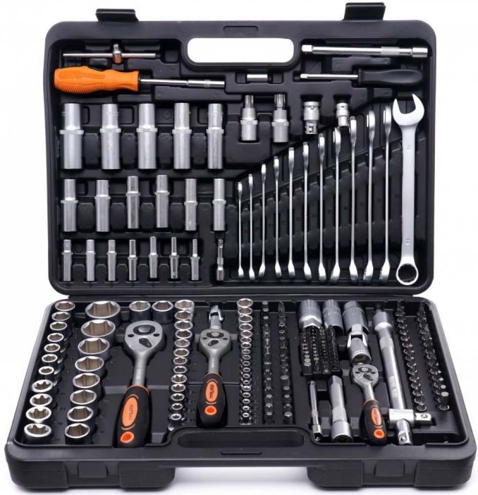 Gola sada 219 ksPraktická kvalitní gola sada se skládá z 219 různých druhů nářadí. Vyrobené jsou z tvrzené chrom-vanadiové oceli (CrV), čímž zaručují odolnost proti korozi, oxidaci, oděru a vysokým teplotám. Je uložená v praktickém plastovém pouzdře, které usnadňuje přenášení.Specifikace:Velikost čtvercového pohonu 1/4", 3/8", 1/2"Nástrčné hlavice: 103 ks Nástrčné hlavice šestihranné:1/2" 1/2" 15 ks: 10, 11, 12, 13, 14, 15, 17, 19, 20, 21, 22, 24, 27, 30, 32 mm3/8" 10 ks 10, 11, 12, 13, 14, 15, 16, 17, 18, 19 mm1/4" 13 ks 4, 4,5, 5, 5,5, 6, 7, 8, 9, 10, 11, 12, 13, 14 mmRáčna: 3 ksRáčna 1/4" (72 zubů)Adaptér s otvorem: 1/2"Imbusové klíče: 1,27 mm (x2), 1,5 mm (x2), 2 mm (x2), 2,5 mm, 3 mm, 4 mm, 5 mmŠroubovací bity: 74 ksŠroubovací bity: 30 ks (30 mm) t25, t27 (x2), t30 (x2), t35 (x2), t40 (x3), t45 (x2), t50 (x2), h5,5, h6 (x2), h7, h8, ploché 6, 6,5, 8 mm, ph3, ph4, pz3, pz4, m5, m6, m8, m10 1/2"Prodloužení: 125 mm a 250 mmSada kloubů: 3 ksUniverzální kloub: 1/2"Sada rukojetí: 4 ksDržák bitů: 1/4" Očko ploché klíče: 8, 9, 10, 11, 12, 13, 14, 15, 16, 17, 18, 19 mmHmotnost: 6 kg