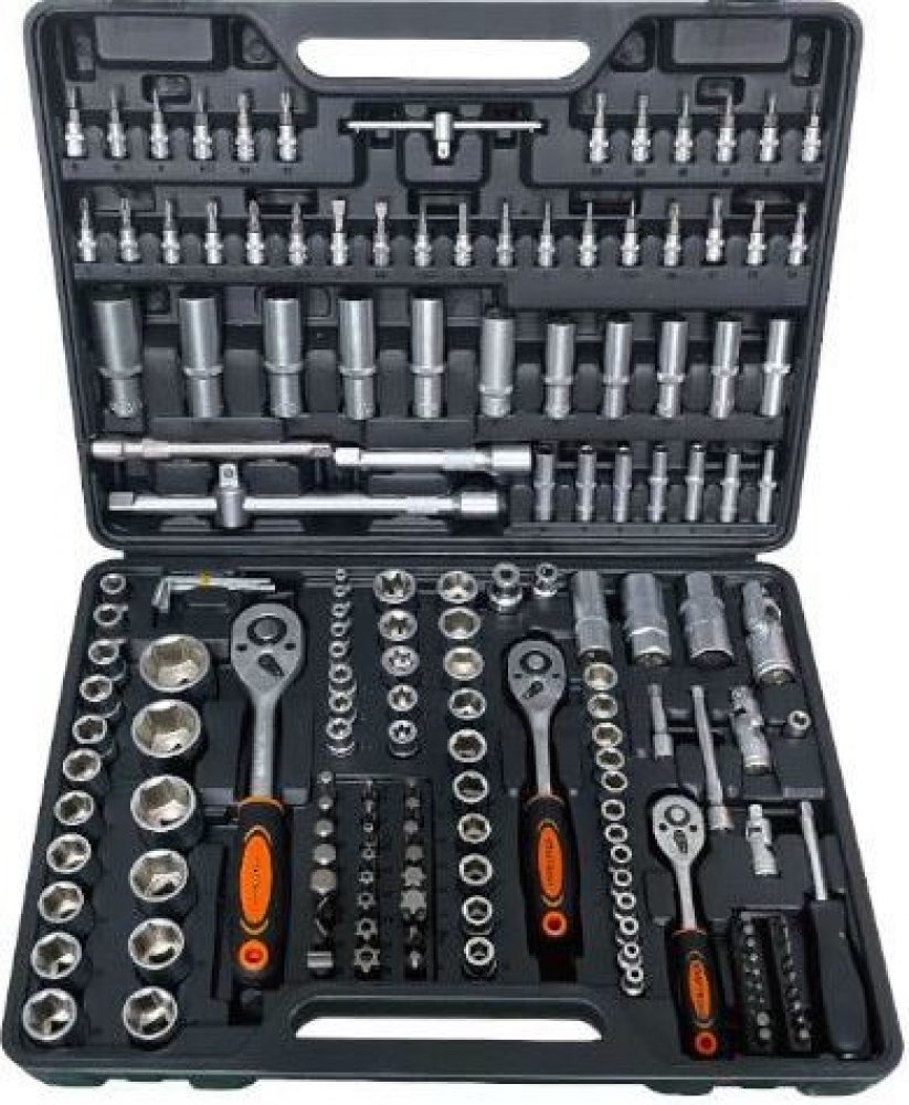 Skvělé vybavená a zpracovaná sada nejčastěji používaného nářadí a klíčů v dílně. Každý nástroj má své místo v praktickém plastovém kufru. Klíče jsou vyrobeny z chrom-vanadiové oceli, která je charakteristická poměrně dobrou houževnatostí při vysoké tvrdosti, dobrou odolností proti opotřebení a dlouhou životností nástrojů. S touto sadou si vystačíte na nejběžnější i složitější opravy, montáže ve vaší domácnosti či garáži. Svou výbavou najde uplatnění i v profesionální dílně.