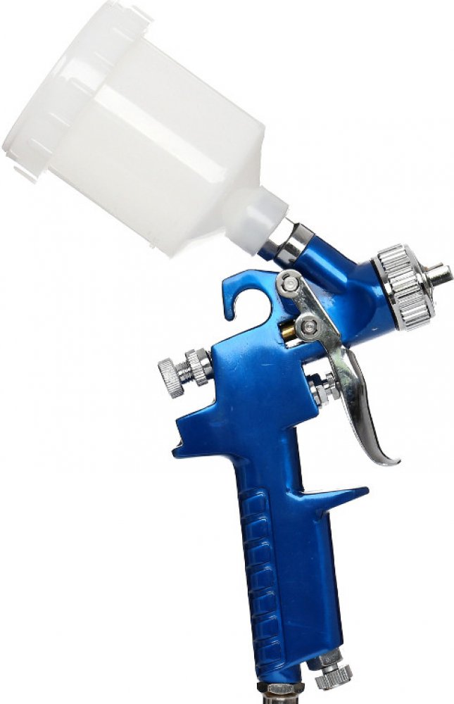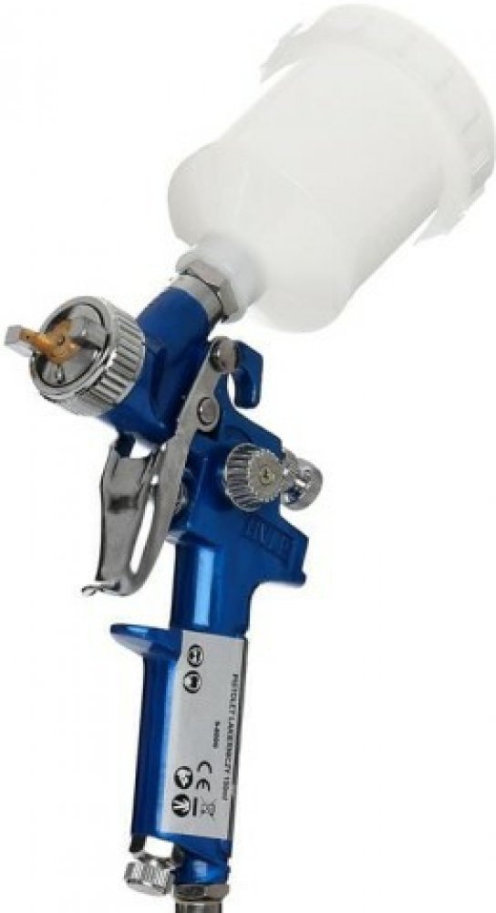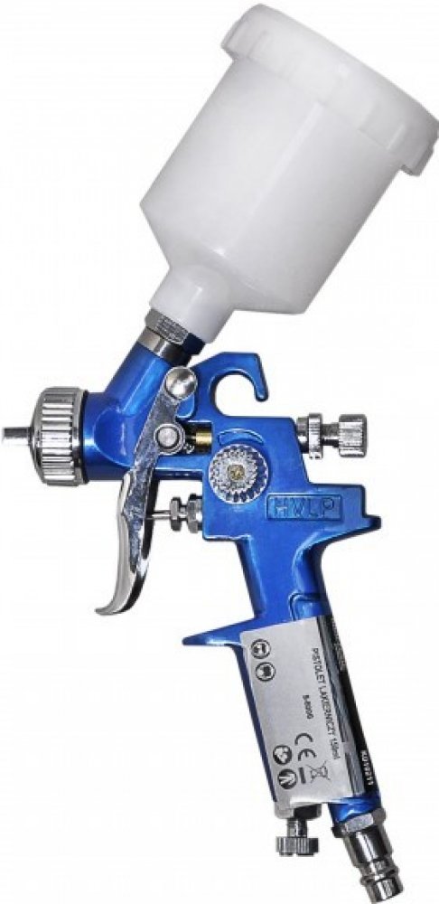 Profesionální stříkací pistole na barvy se dá použít k natírání povrchů vodou ředitelnými laky, akrylovými základními barvami, tmely, metalickými a perleťovými barvami. Na stříkací pistoli jsou dva knoflíky, které regulují práci ve dvou rovinách.
