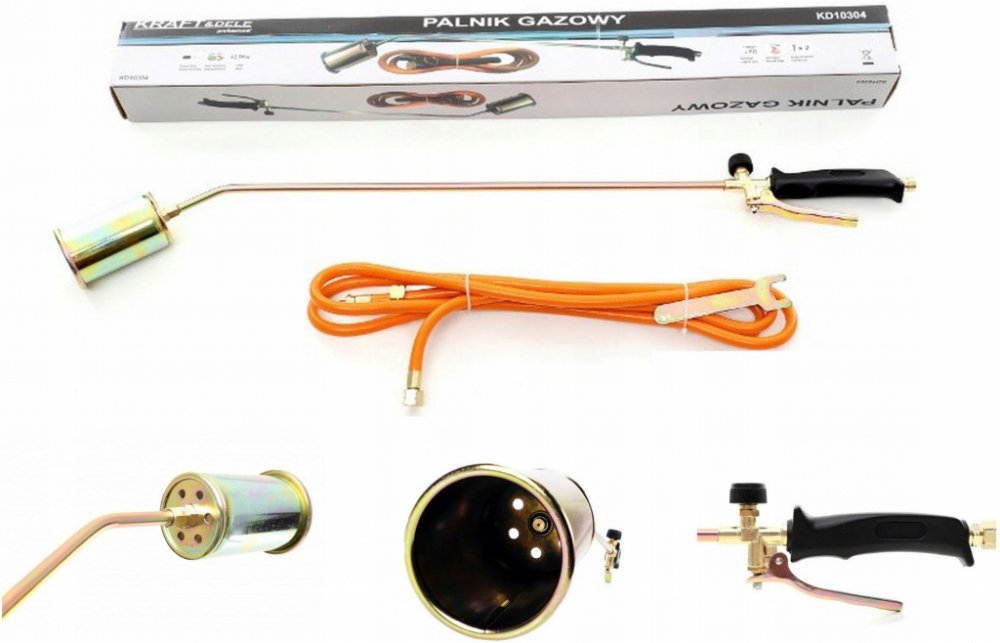 Střešní plynový hořák na propan-butan s hadicí na lahve Kraft & Dele KD10304 je ideální pro zastřešení, opalování a mnoho dalšího. Rukojeť s knoflíkem regulujícím průtok plynu umožňuje přesně nastavit požadovaný plamen.