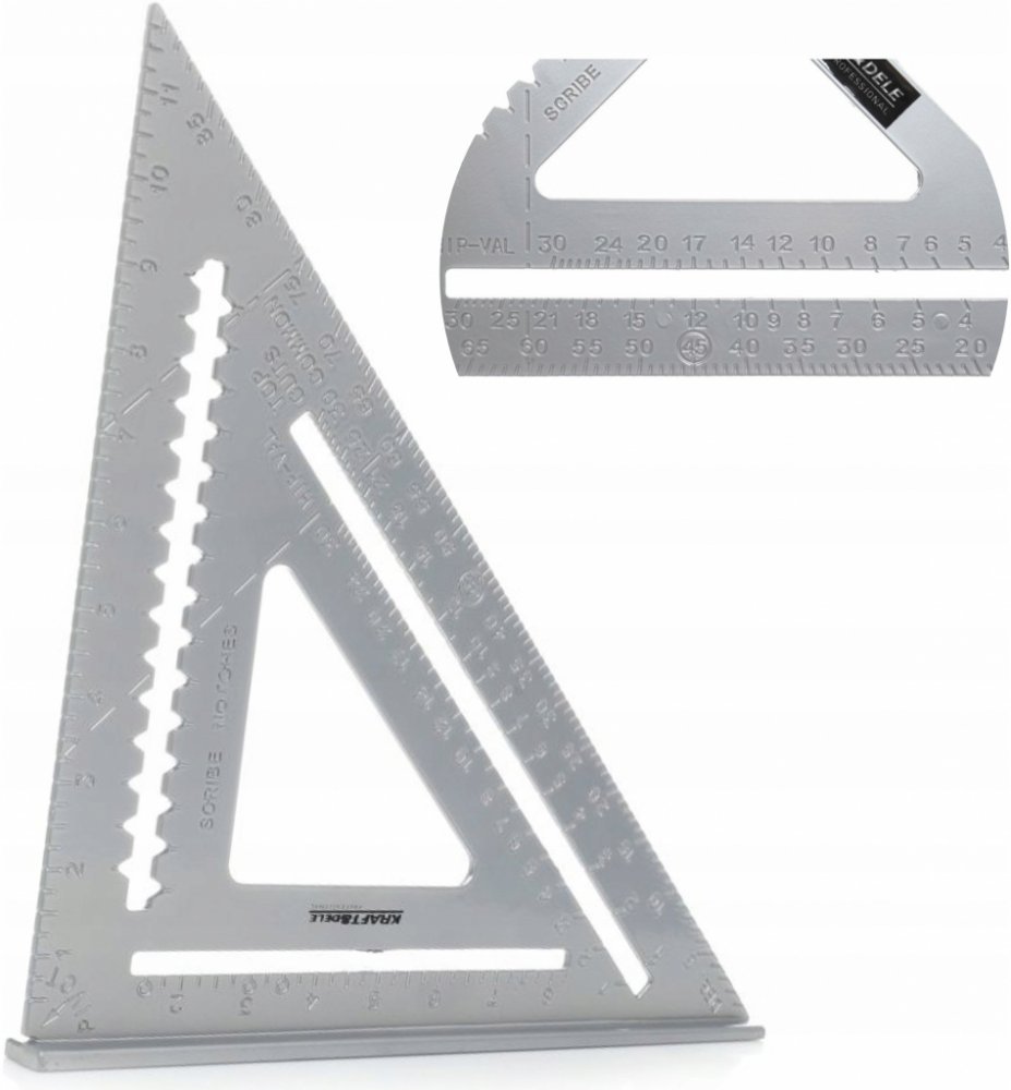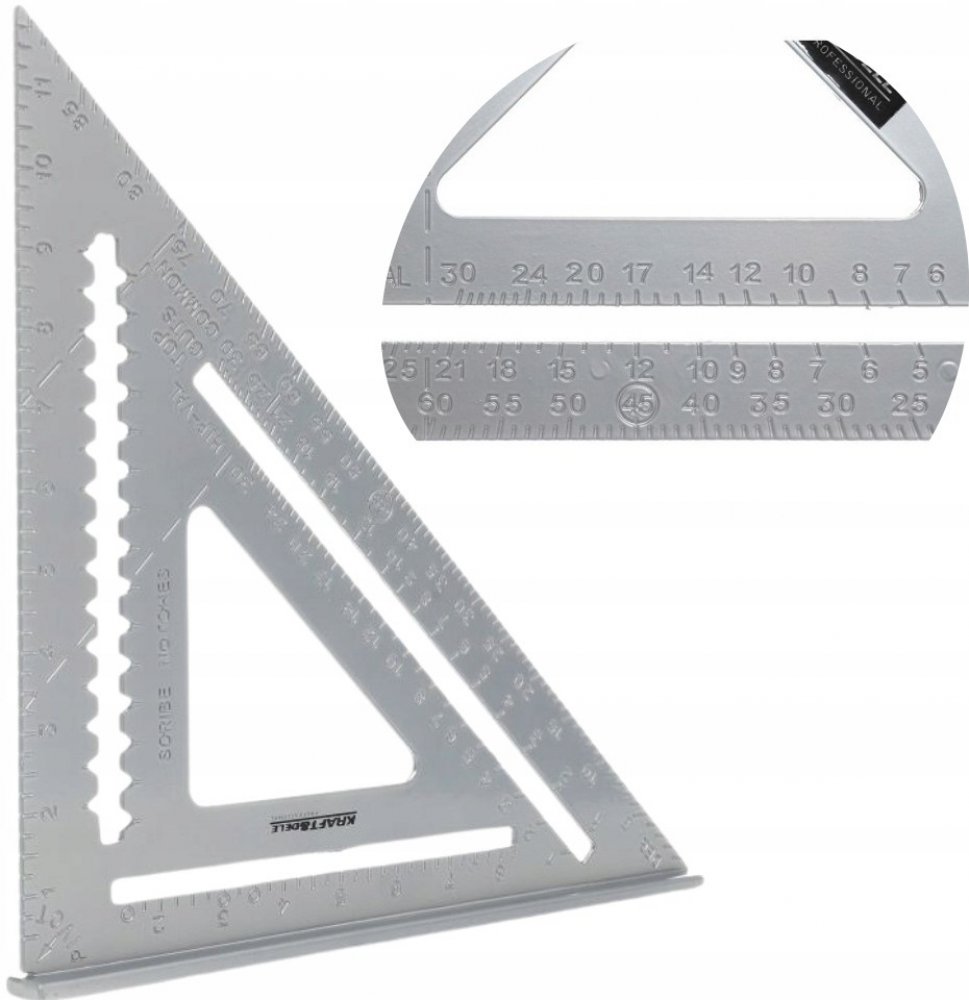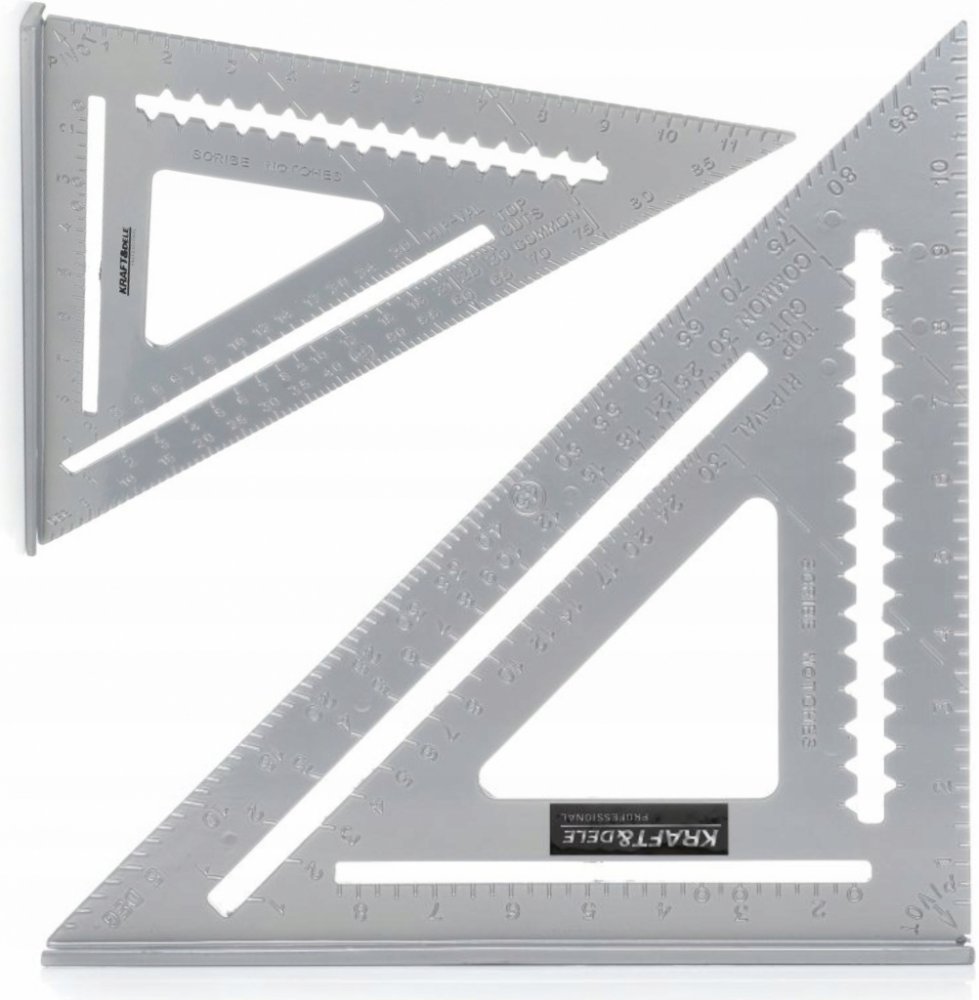 Úhelník značky Kraft&Dele o velikosti 12" je vyrobený z pevného materiálu s metrickými stupnicemi