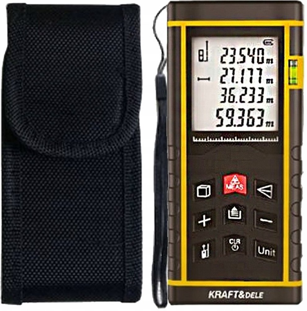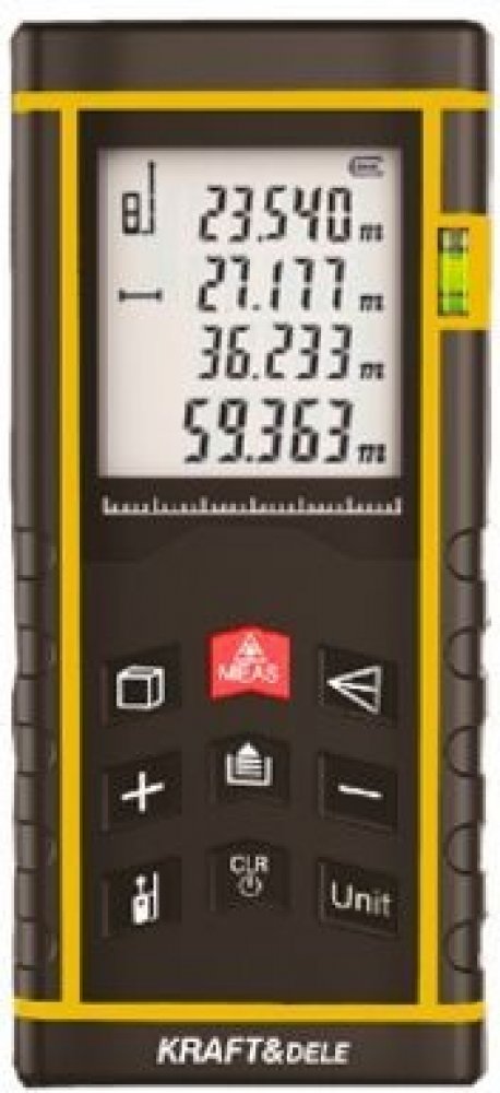 Laserové měření profesionálním dálkoměrem značky Kraft & Dele KD10406 usnadňuje měření vzdálenosti. Červený laserový paprsek bude ukazovat směr, díky kterému dokonale zasáhnete požadované místo až ve vzdálenosti 60m. Vestavěná vodováha naopak pomáhá kontrolovat úhel sklonu při měření. Měřič je dále vybaven funkcí záznamu měření a zvukovou signalizací.