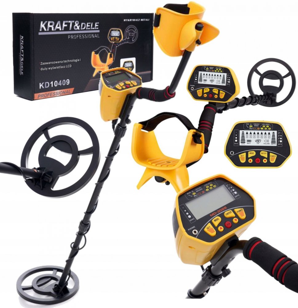 Kraft&Dele detektor Kraft&Dele 150 cm 2000 g VLF voděodolné lcd displej 2x 9V baterie na 9V baterii 20.3 cm těžké a robustní