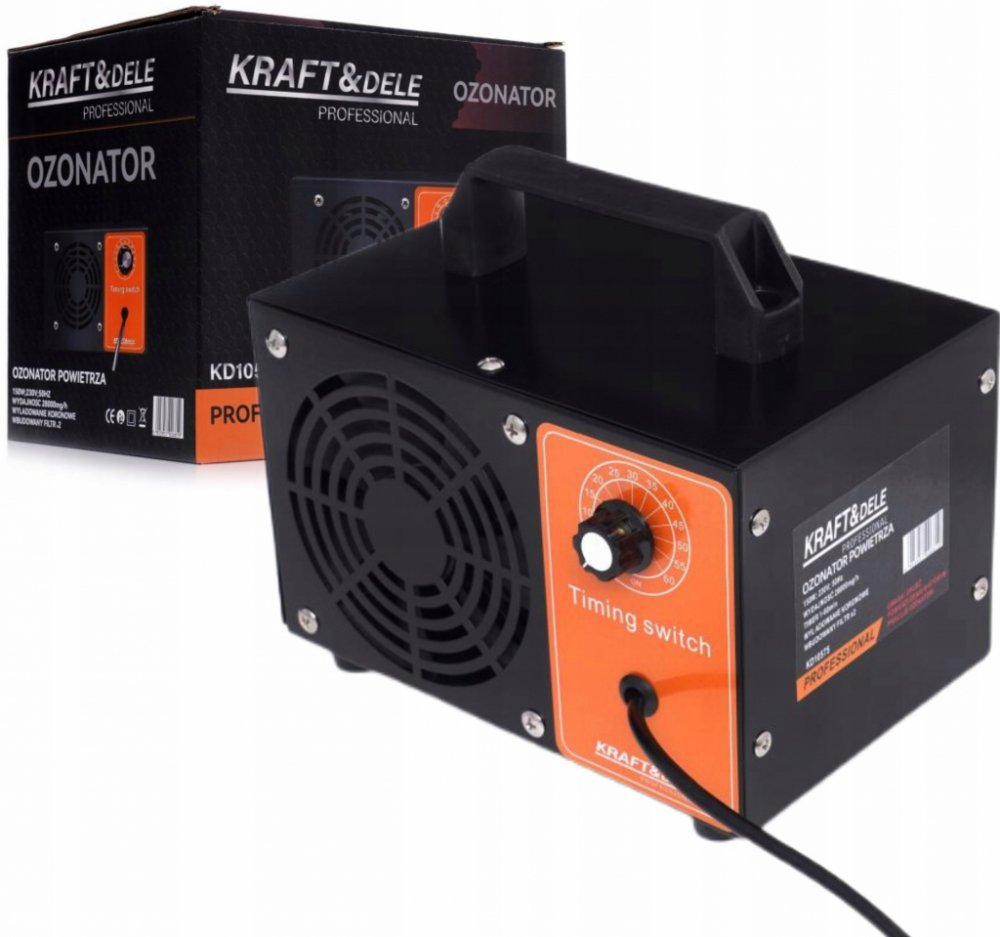 Profesjonalny ozonator model KD10575 polskiej marki KRAFT&DELE. Wykonany z najwyższej jakości materiałów, w tym stali oraz aluminium.