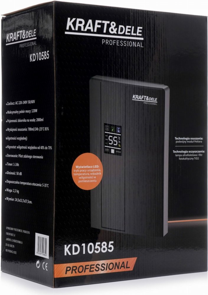 Odvlhčovač vzduchu značky Kraft&Dele, model KD10585, využívá technologii Peltiera (bez kompresoru), díky čemuž je lehký a tichý. Ideální pro malé prostory, jako jsou kanceláře, koupelny nebo pokoje. Tento mini odvlhčovač chrání před nežádoucí vlhkostí.