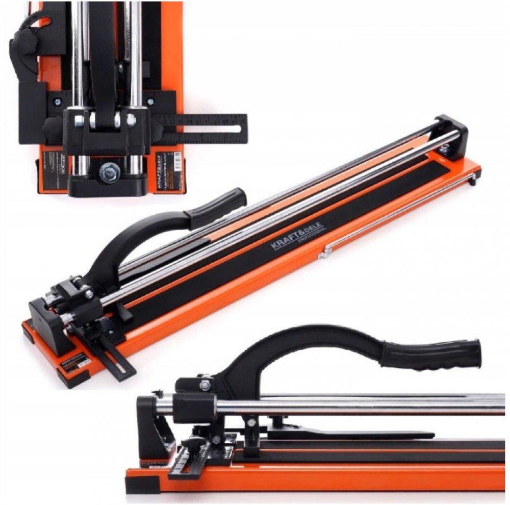 Řezačka pro řezačku dlaždic KD10673 od Kraft&Dele se skládá ze stabilní základny vyrobené ze silného ocelového plechu lemovaného podélně dvěma paralelními vodítky a posuvnými lištami.