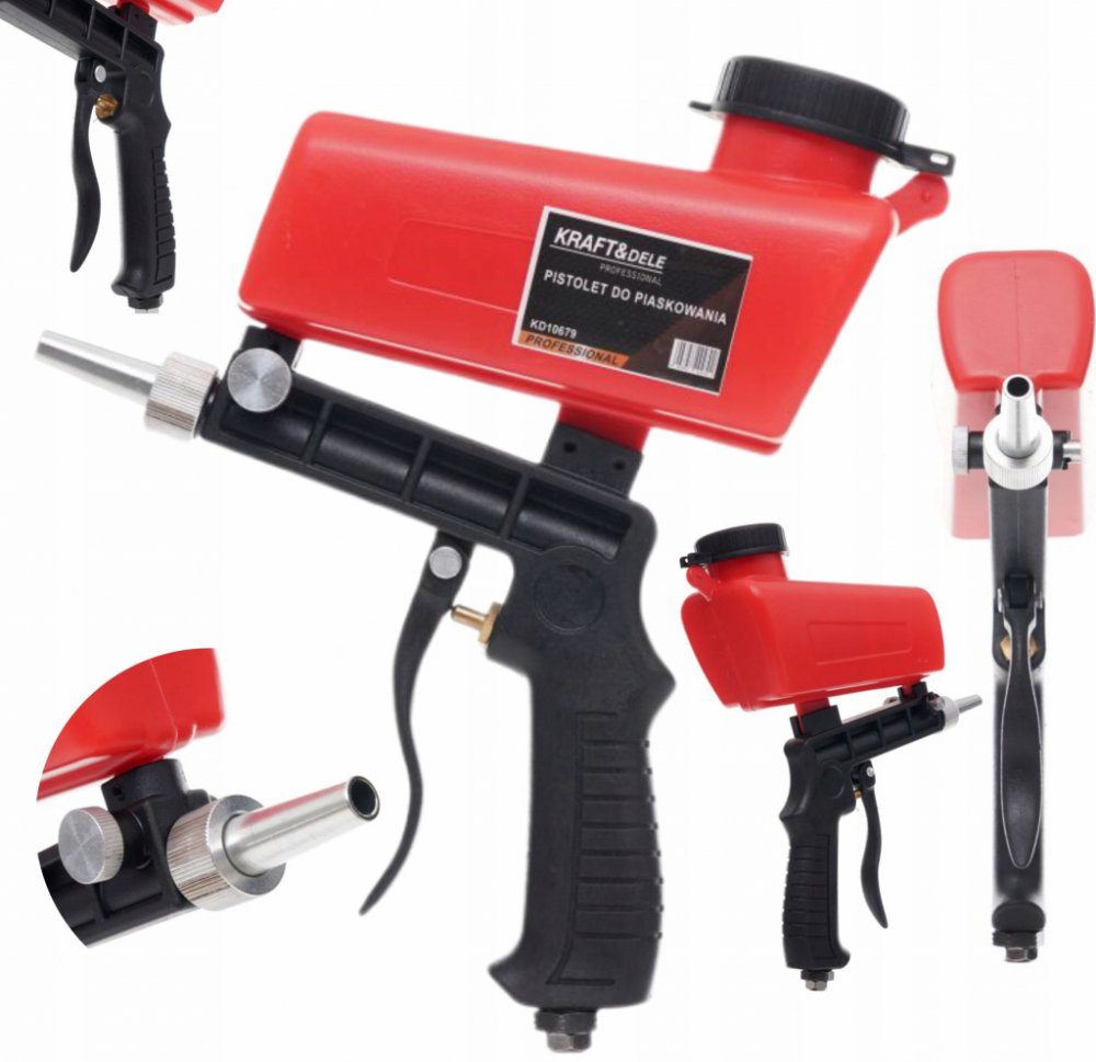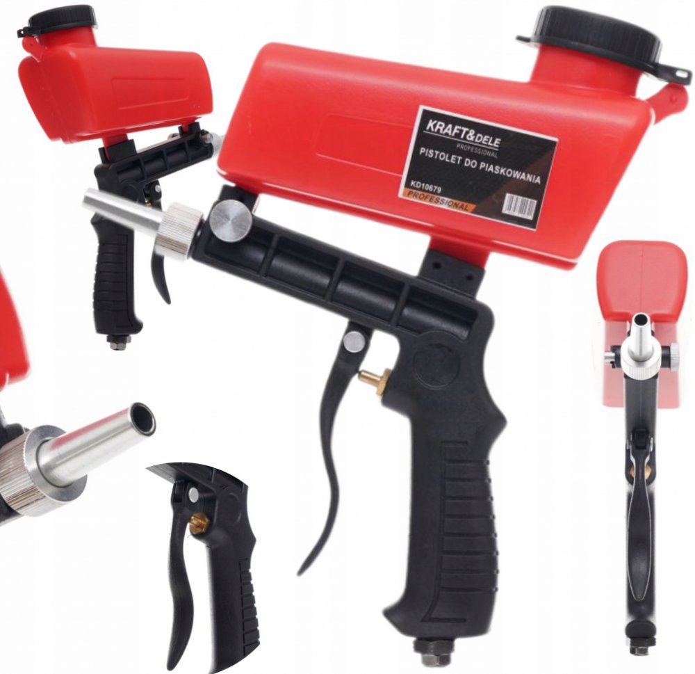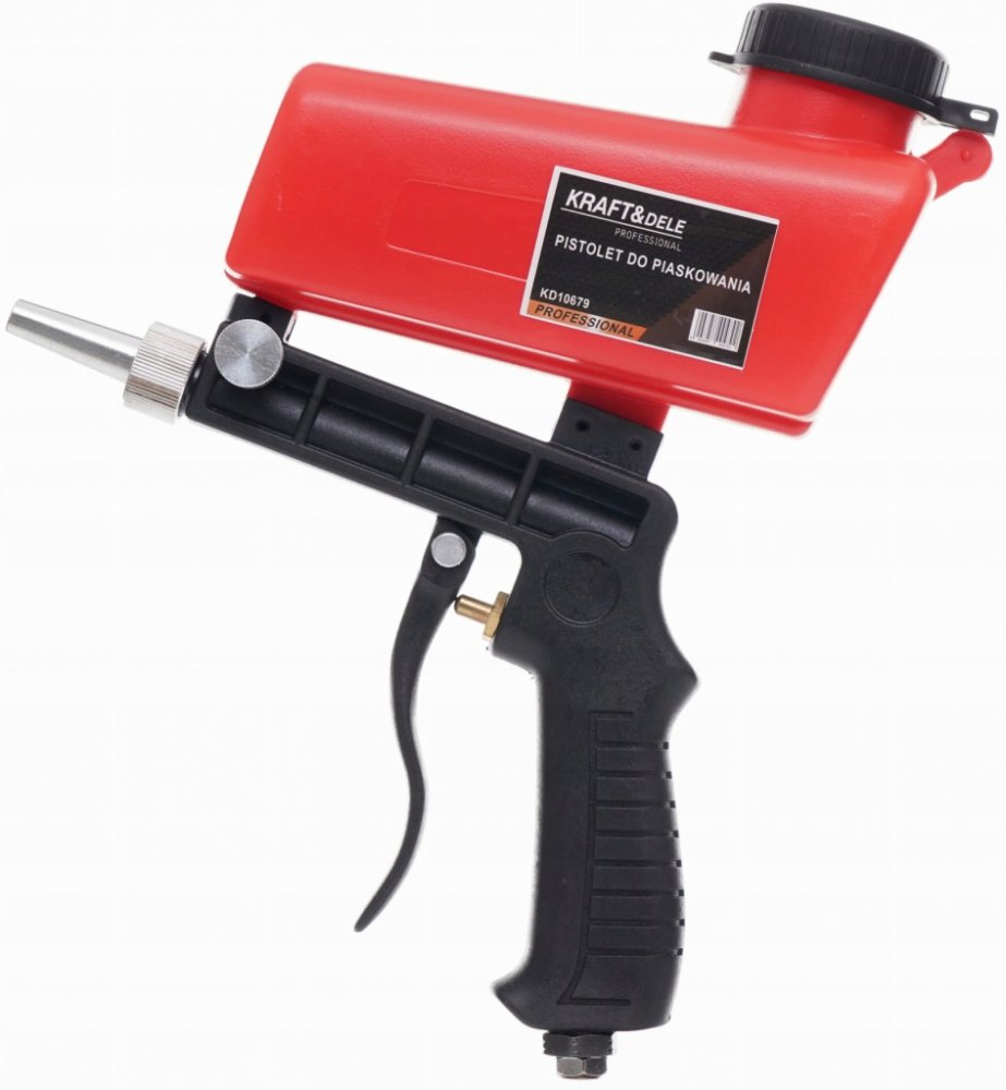 Wszechstronny pistolet do piaskowania marki Kraft&Dele model KD10679 idealnie sprawdzi się podczas usuwania rdzy, zdzierania farby czy innych czynności czyszczących. Aluminiowy korpus jest lekki i przenośny, łatwy w obsłudze.