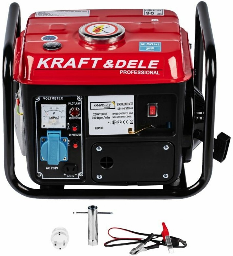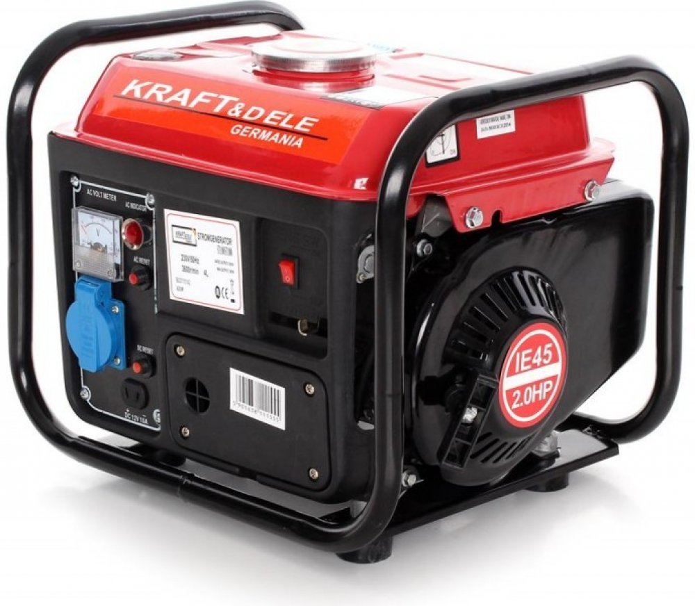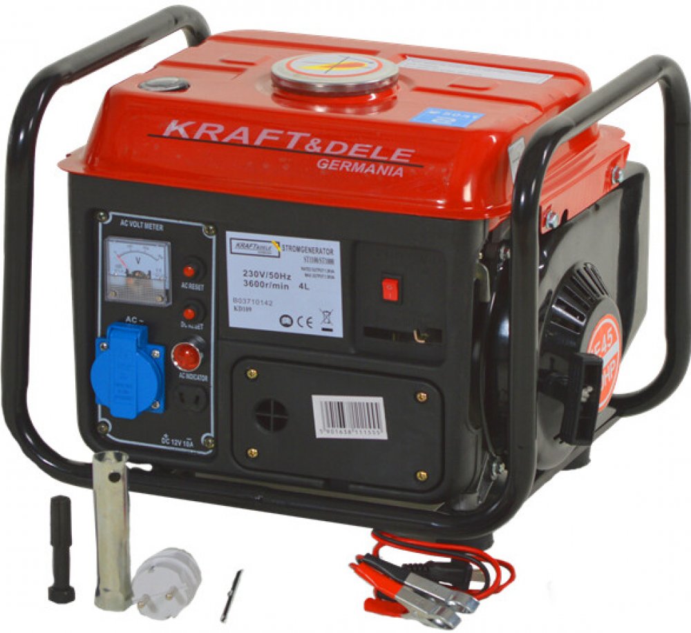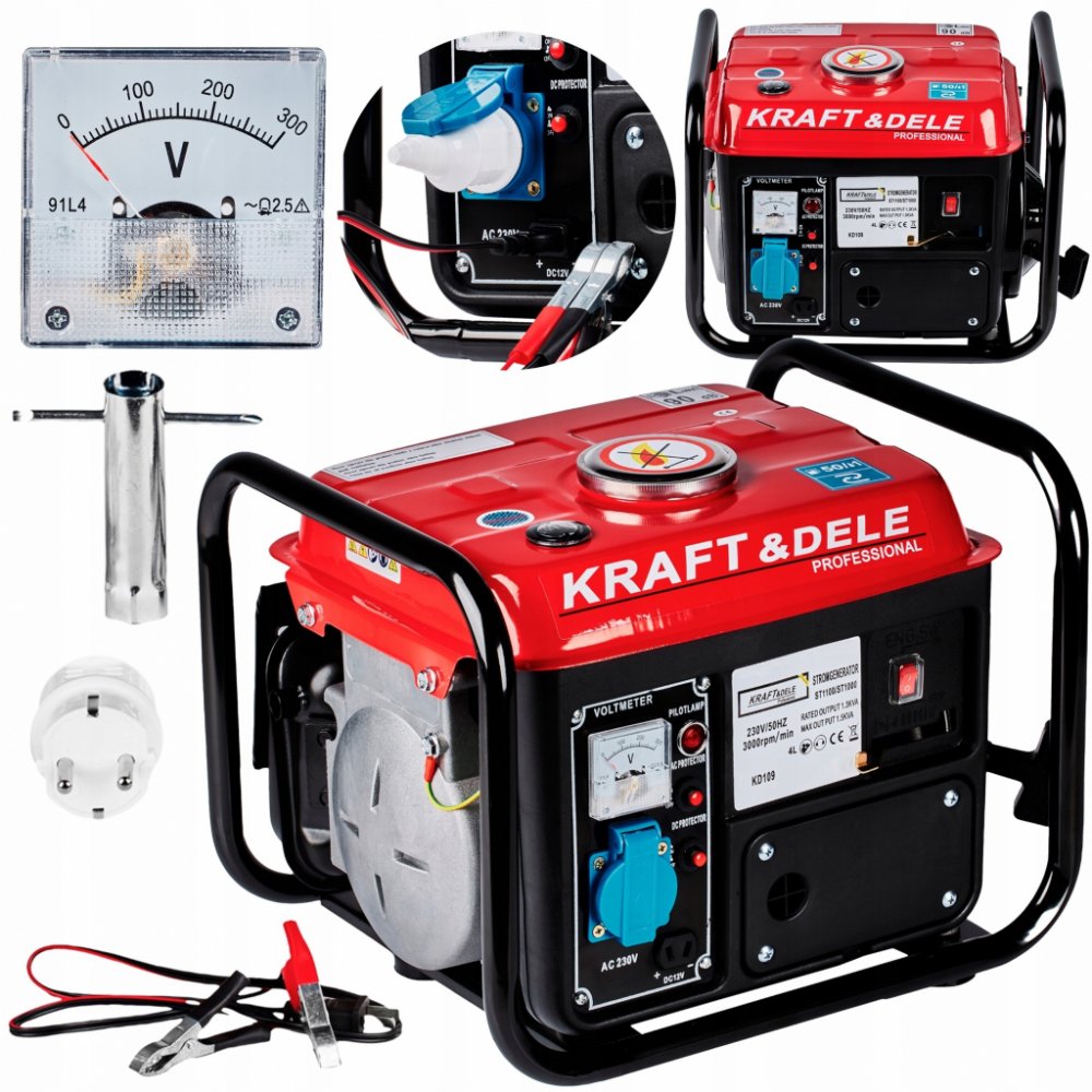 Přenosná jednofázová elektrocentrála s označením KD109 od Kraft&Dele je určena k výrobě střídavého proudu 220V-230V pomocí japonského 2-taktního spalovacího motoru OHV s výkonem 2 HP a maximálním výkonem generátoru 1200 W.