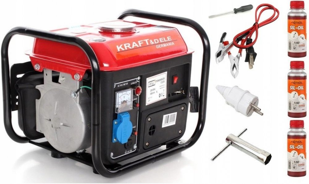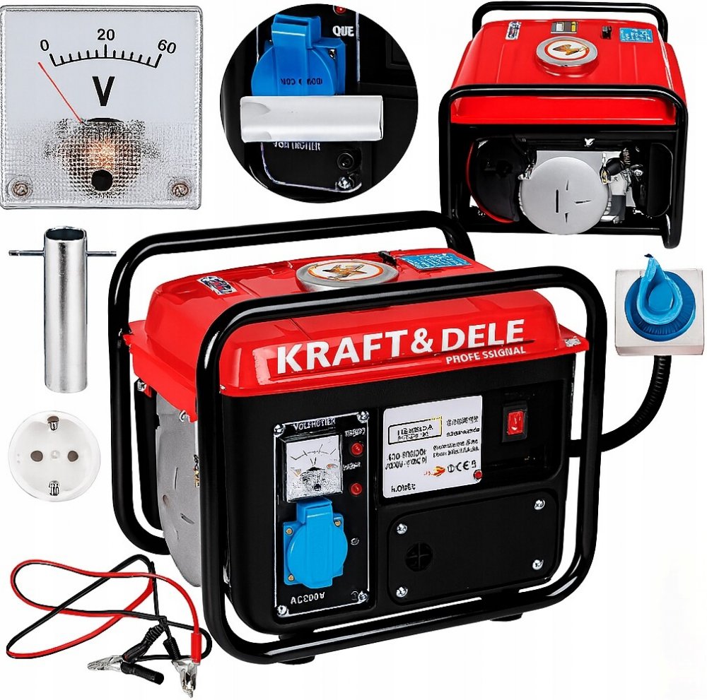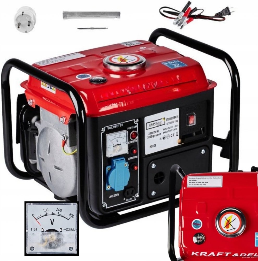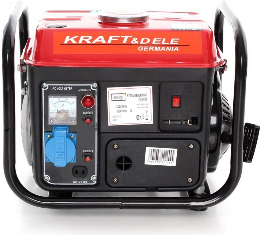 Přenosná jednofázová elektrocentrála s označením KD109 od Kraft&Dele je určena k výrobě střídavého proudu 220V-230V pomocí japonského 2-taktního spalovacího motoru OHV s výkonem 2 HP a maximálním výkonem generátoru 1200 W.