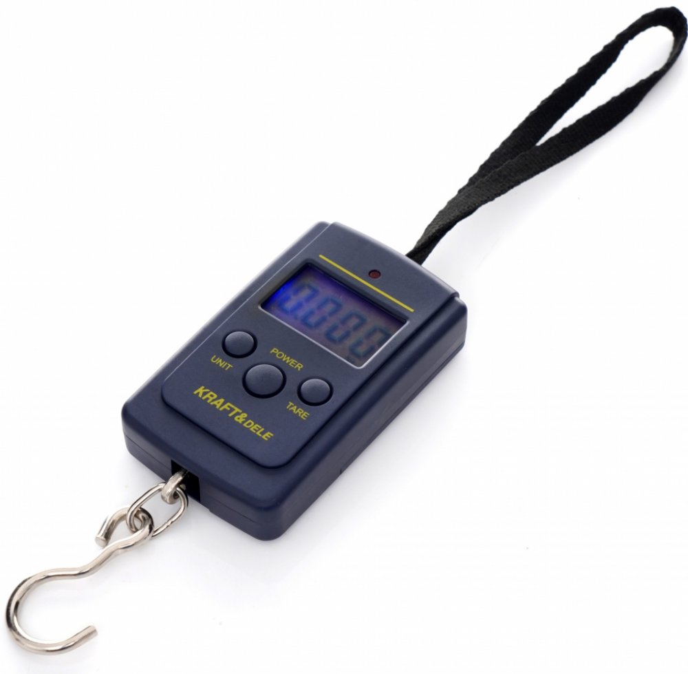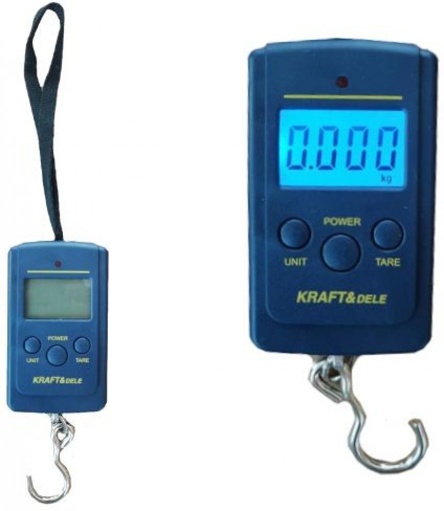 Moderní kapesní háková ruční váha značky Kraft&Dele lze použít ve skladech, obchodech nebo přepravních společnostech