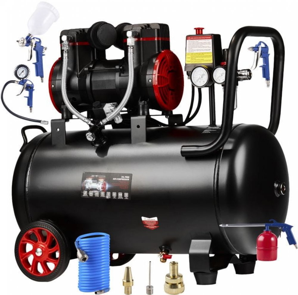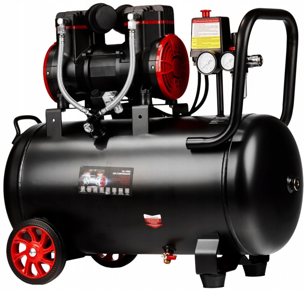 Velmi tichý dvoupístový kompresor vybavený vzdušníkem o objemu 50litrů, je zdroj čistého vzduchu bez oleje. Kompresor je vybaven odlučovačem oleje s redukčním ventilem, který zastavuje vodu v odsávaném vzduchu.