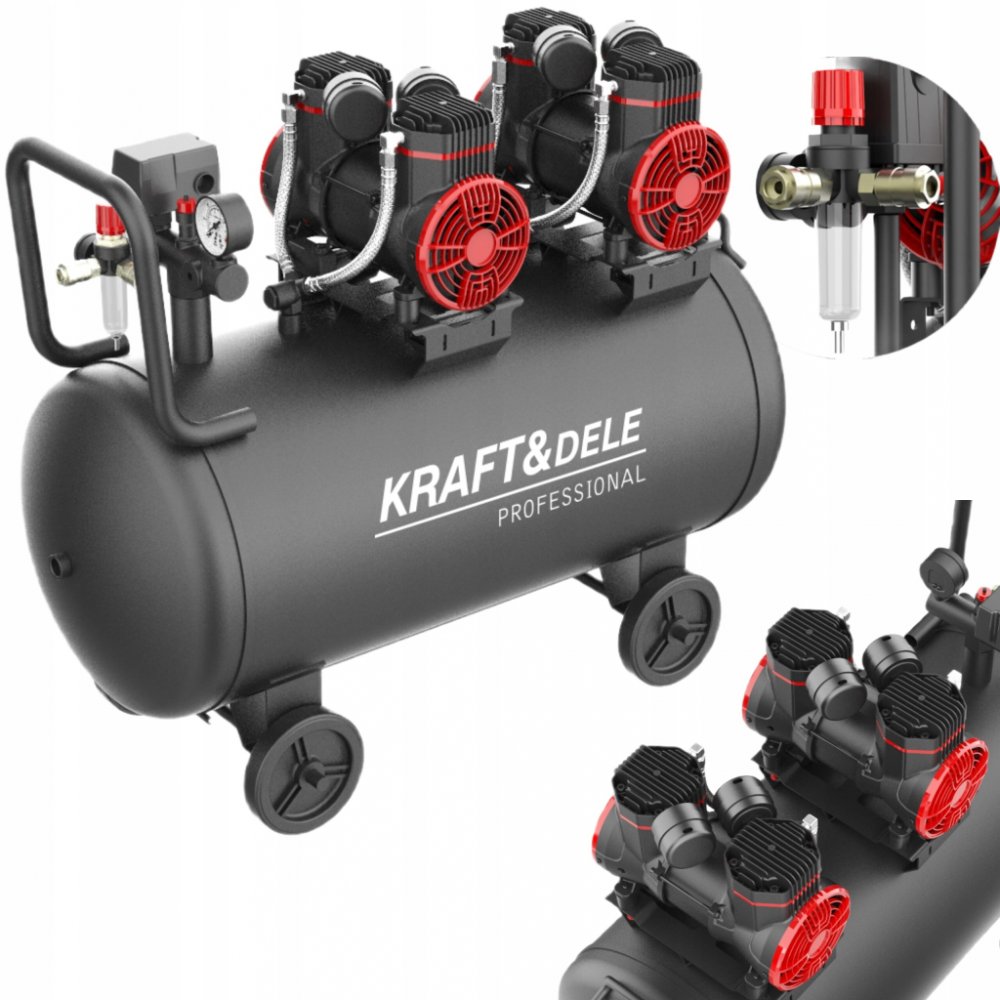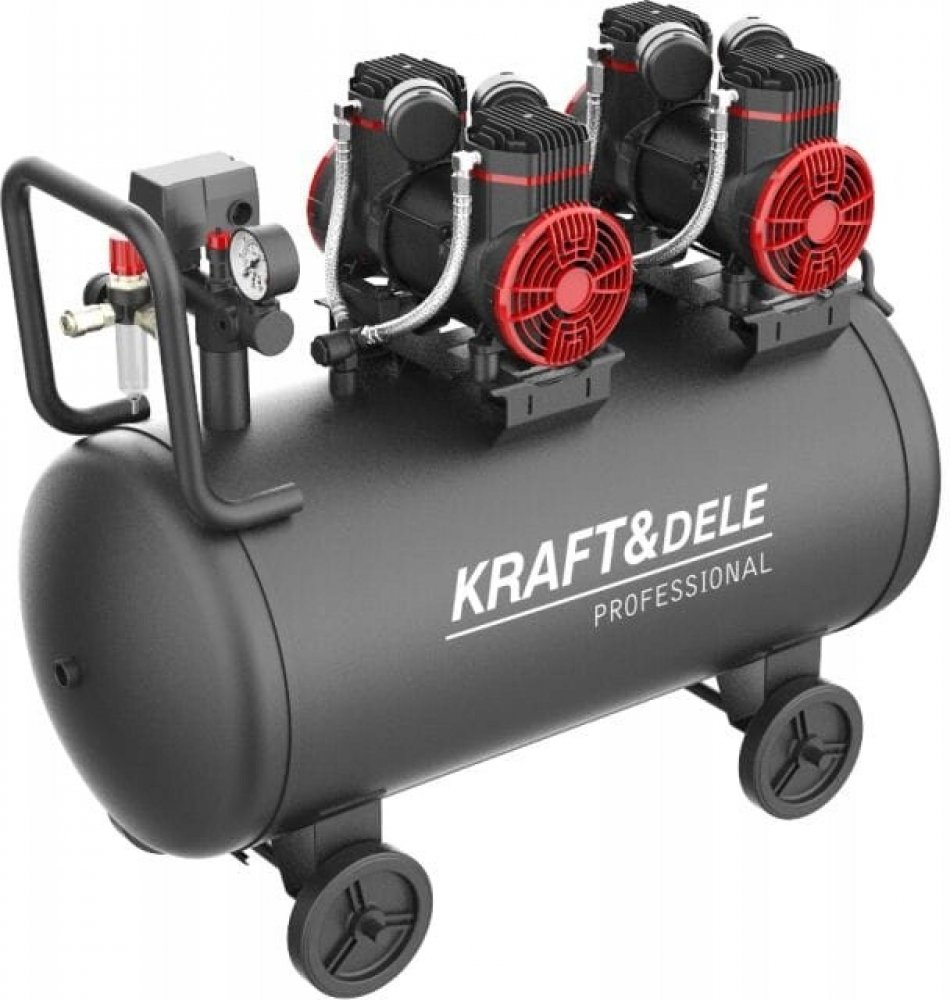 Kompaktní a praktický kompresor KD1392 se skvěle hodí na místech, kde vzduch nesmí být znečištěn olejem, např. v domech, zubních ordinacích atd. Čtyř pístový kompresor je vybaven 2 čerpadly po 2 pístech v uspořádání řady.