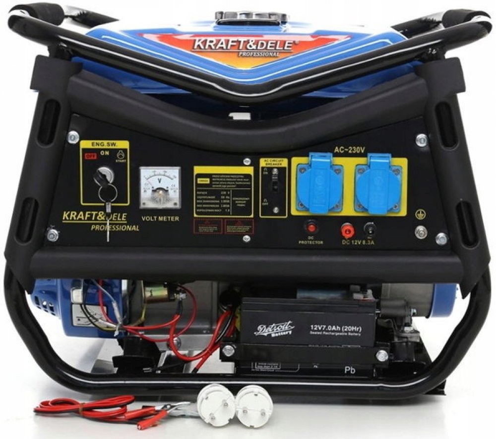 Přenosný jednofázový elektrocentrála KD142 značky Kraft&Dele je určen k výrobě střídavého proudu 220V-230V pomocí čtyřtaktního spalovacího motoru japonské konstrukce OHV s výkonem 7 HP a maximálním výkonem generátoru 3000 W.