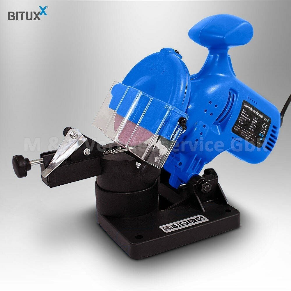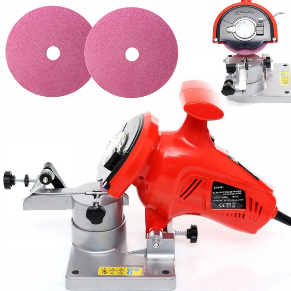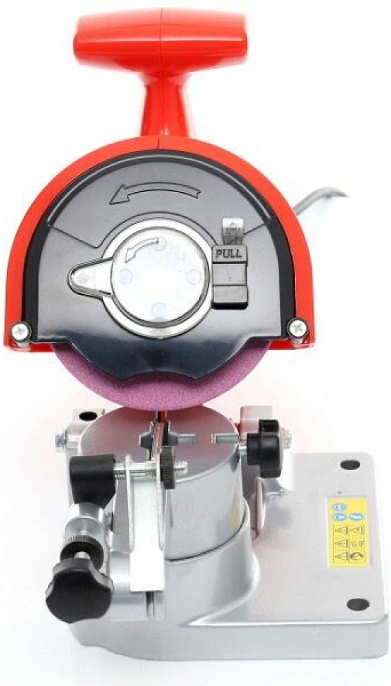 Zařízení je vybaveno standardním brusným kotoučem o průměru 100 mm a tloušťce 3,2 mm. Je také vybaven omezovačem hloubky broušení, který umožňuje větší přesnost při ostření řetězu.